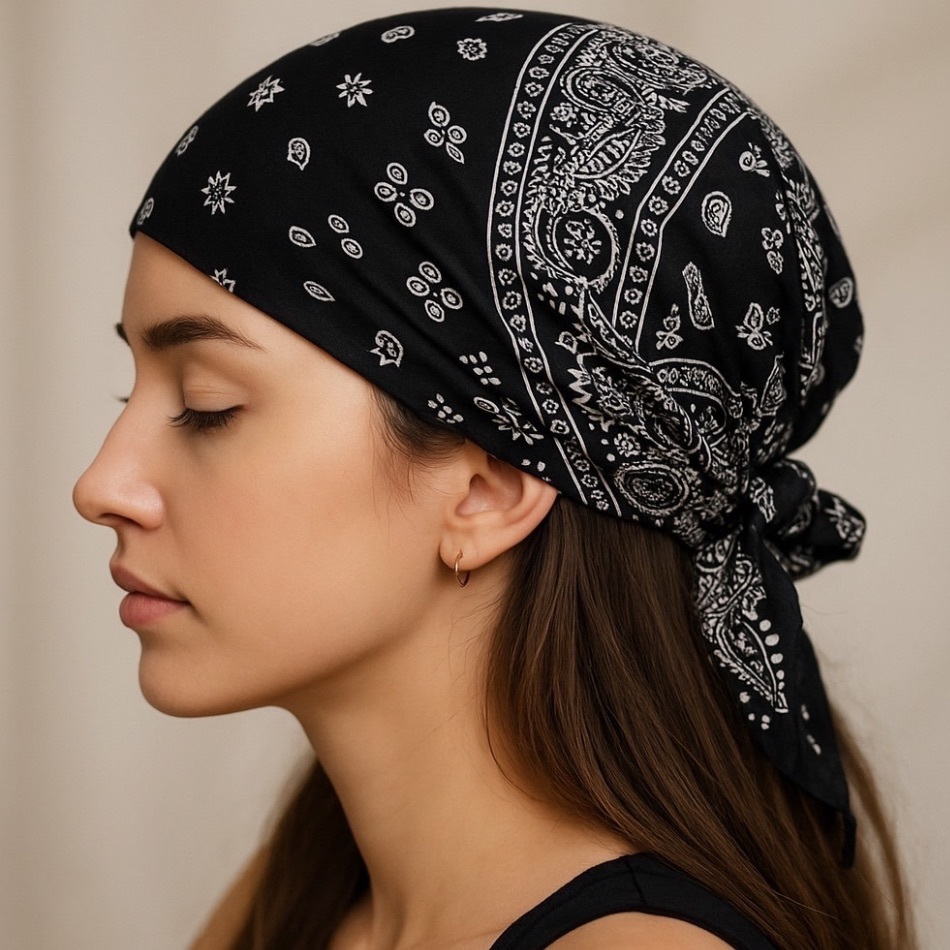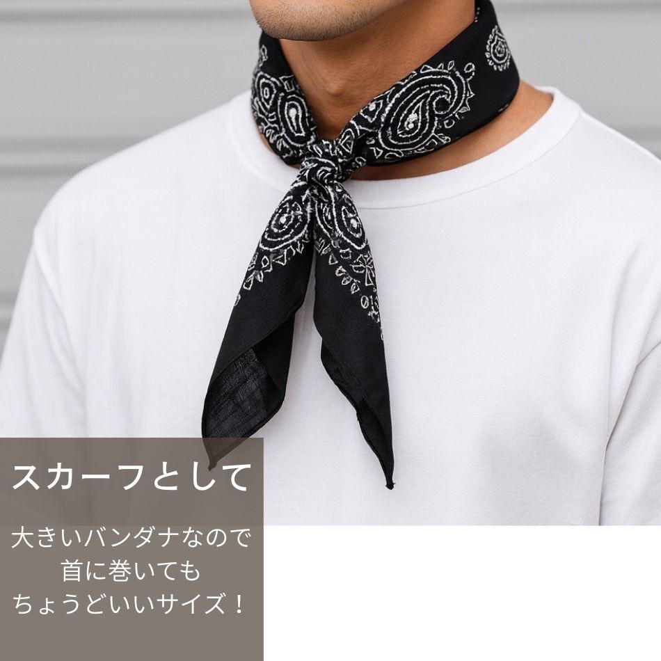 大判サイズ(約70cm×70cm)のペイズリー柄バンダナです。