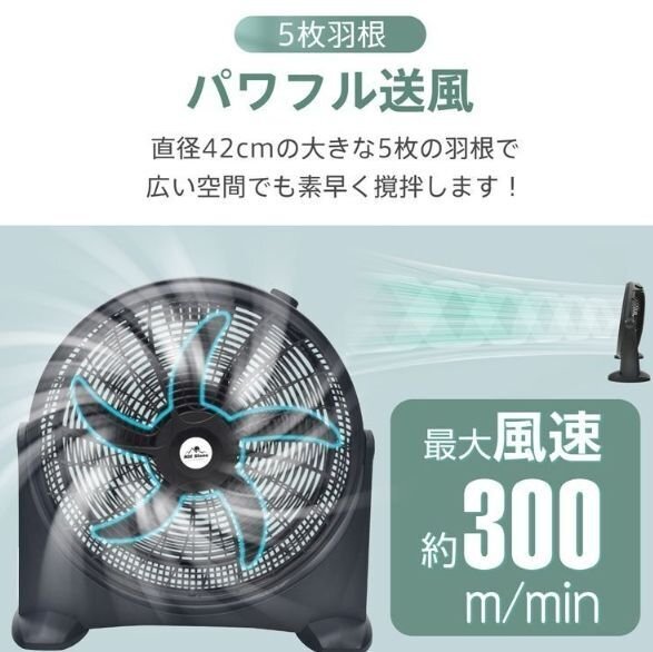 ■5枚の大きな羽根で広い空間でも空気を素早く撹拌します。