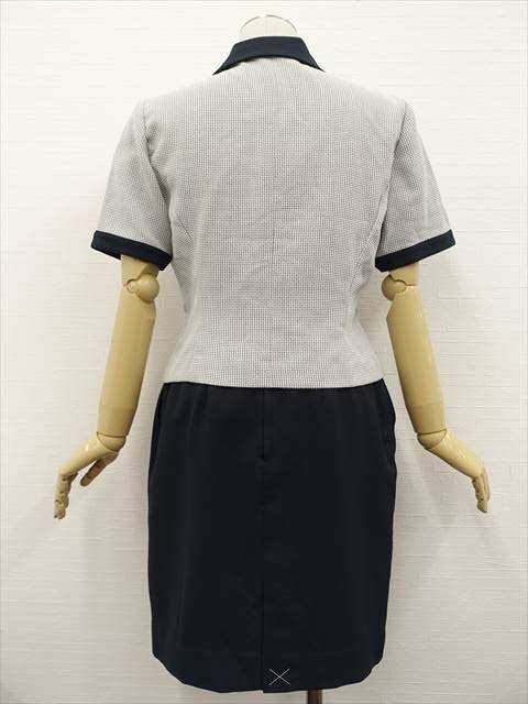 洗える半袖ジャケット+ひざ丈タイトスカート 春夏スーツ上下2点セット 9号 ネイビー×ホワイト/ネイビー