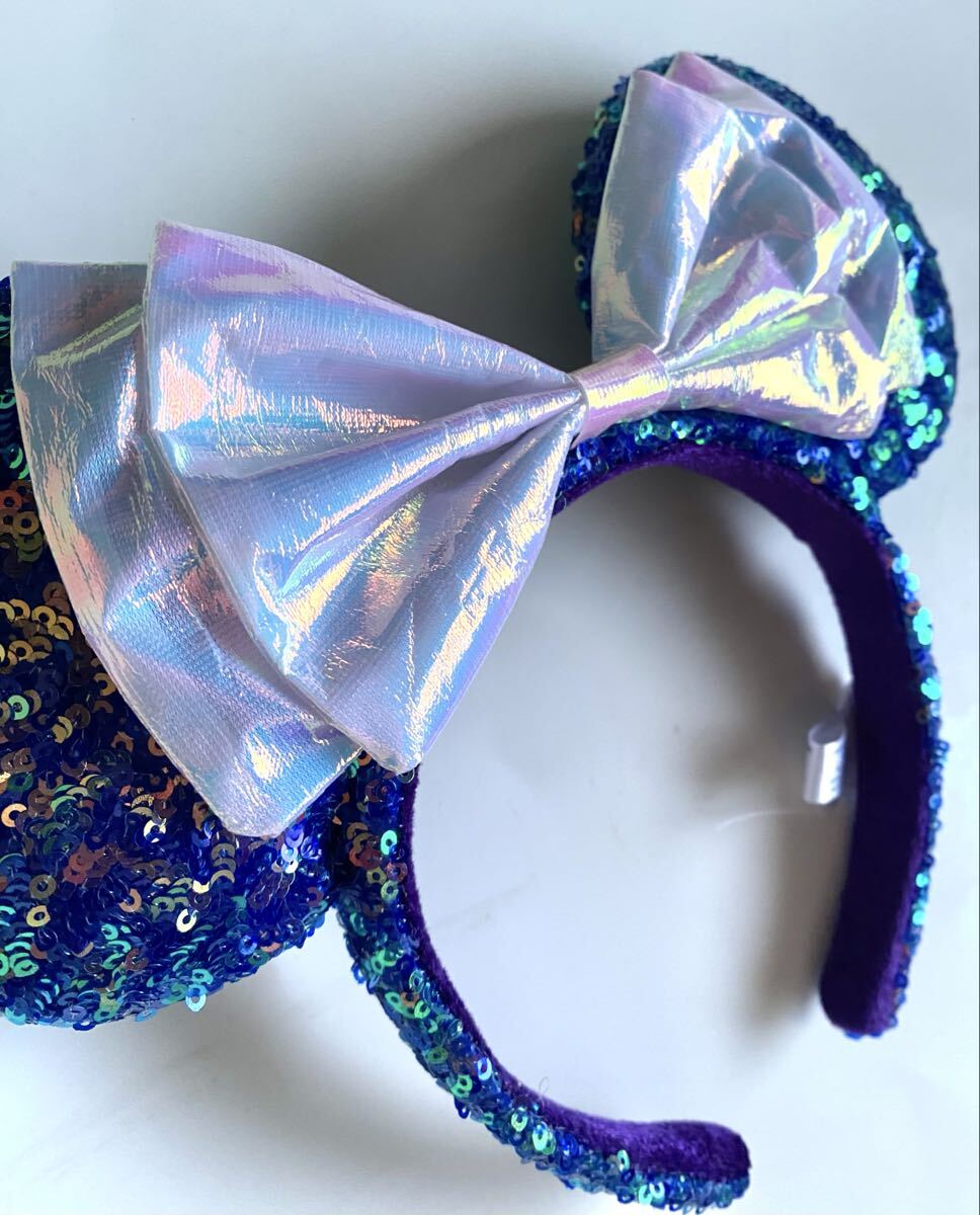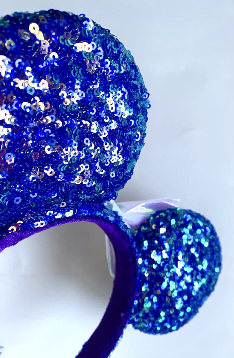 耳がキラキラと輝くブルーのスパンコールで埋め尽くされています。気分アゲアゲマストアイテム!