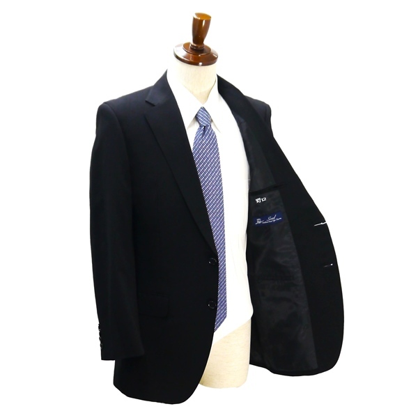 ・春夏対応。2つボタンシングル。背抜き。ノーベント。フラップポケット。ネーム刺繍あり。開き見せ。