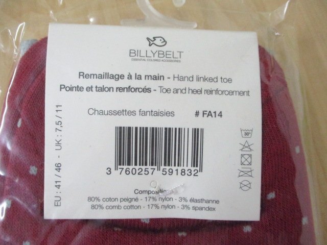 | ★★商品詳細★★ 【未使用保管品】BILLY BELT ビリーベルト 靴下 ソックス メンズ 3足セット まとめ売り サイズ 25.5-29㎝ サイズ: 日本 25.5-29cm EU 41/46 UK 7.5/11 詳しくはメーカーホームページ等でご確認下さい。 現状渡しとなりますので、必ずPCより画像のご確認をお願い致します。 当方詳しくない為、画像のみでご理解・ご納得頂けた方のみご入札下さい。 ※注意※ 未使用品ではありますが保管品の為、画像では分かりづらいキズや汚れ等が有る場合がございます。 神経質な方や、完璧な物を求める方はご入札をお控え下さい。 ★★ご入札後の取り消しにつきましてはいかなる場合であっても一切お受けできません★★ ※商品説明・発送方法・ストア規約をよくご確認の上、責任を持ってご入札をお願い致します。 ※発送方法および送料につきましては下記に記載がありますのでご確認お願い致します。 ※発送方法はネコポスのみです。 ※宅配業者の指定・着払い等には対応出来ませんので予めご了承下さい。 ※発送方法および送料についての質問にはお答え致しかねます。 ★★支払詳細★★ 弊社指定支払い方法 ★★最後までお読みください★★ ご落札後の返品・キャンセルはお受けできかねますので、くれぐれも慎重にご入札頂けますよう、重ねてお願い申し上げます。返品・キャンセルはお断りさせて頂いておりますが、お客様の御都合で返品・キャンセルをご希望される場合は、落札金額の30%をキャンセル料として頂きます。 ご落札後に、連絡を頂けないといった事例があります。 次点の方にお譲りするため、早期に取り消しをさせて頂く場合があります。 スムーズで、円満なお取引を望んでおりますので、何とぞご承知置き下さい。 | ||
