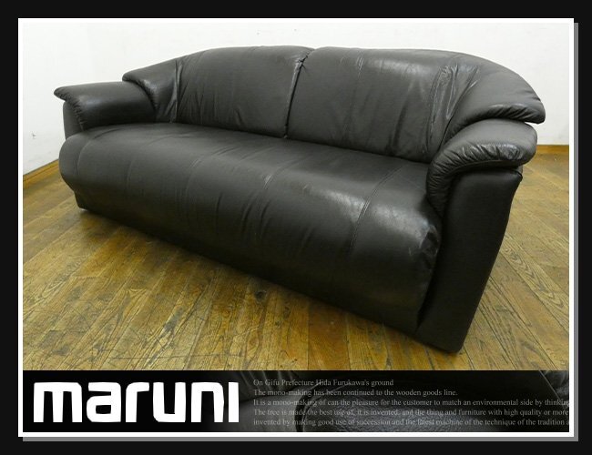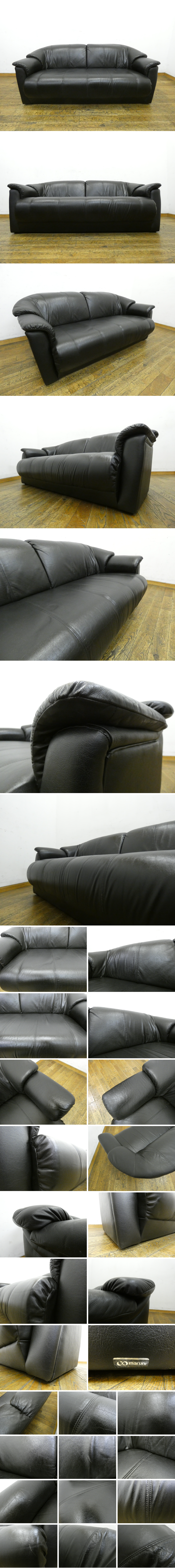 ◆RN50◆maruni マルニ◆本革◆黒◆高級◆2人掛けソファ◆2Pソファ◆長椅子◆レザー張り◆リビングソファ◆応接ソファ