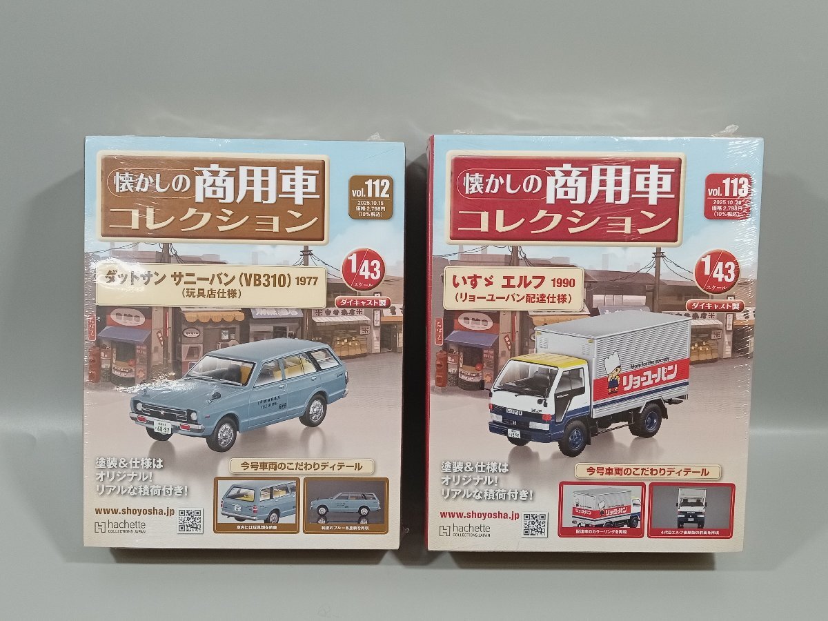 【未開封】 アシェット 懐かしの商用車コレクション 2点まとめ売り 112号ダットサンサニーバン/113号いすゞ エルフ [4-4] No.9858