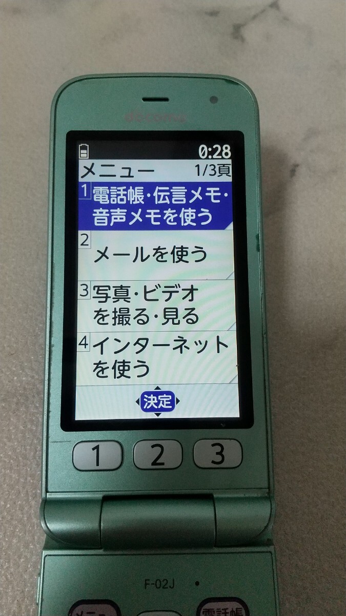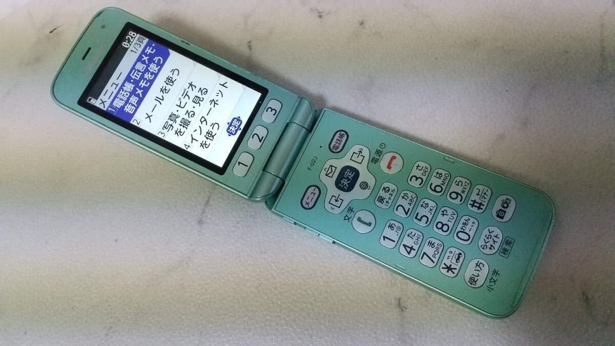 S3960 docomo SIMフリー らくらくホン F-02J FUJITSU 4Gガラホ 簡易確認&初期化OK 判定○ 送料無料 WebにてSIMロック解除受付手続済み