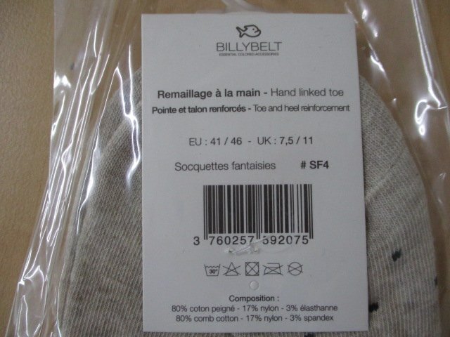 | ★★商品詳細★★ 【未使用保管品】BILLY BELT ビリーベルト 靴下 ソックス メンズ 3足セット まとめ売り サイズ 25.5-29㎝ サイズ: 日本 25.5-29cm EU 41/46 UK 7.5/11 詳しくはメーカーホームページ等でご確認下さい。 現状渡しとなりますので、必ずPCより画像のご確認をお願い致します。 当方詳しくない為、画像のみでご理解・ご納得頂けた方のみご入札下さい。 ※注意※ 未使用品ではありますが保管品の為、画像では分かりづらいキズや汚れ等が有る場合がございます。 神経質な方や、完璧な物を求める方はご入札をお控え下さい。 ★★ご入札後の取り消しにつきましてはいかなる場合であっても一切お受けできません★★ ※商品説明・発送方法・ストア規約をよくご確認の上、責任を持ってご入札をお願い致します。 ※発送方法および送料につきましては下記に記載がありますのでご確認お願い致します。 ※発送方法はネコポスのみです。 ※宅配業者の指定・着払い等には対応出来ませんので予めご了承下さい。 ※発送方法および送料についての質問にはお答え致しかねます。 ★★支払詳細★★ 弊社指定支払い方法 ★★最後までお読みください★★ ご落札後の返品・キャンセルはお受けできかねますので、くれぐれも慎重にご入札頂けますよう、重ねてお願い申し上げます。返品・キャンセルはお断りさせて頂いておりますが、お客様の御都合で返品・キャンセルをご希望される場合は、落札金額の30%をキャンセル料として頂きます。 ご落札後に、連絡を頂けないといった事例があります。 次点の方にお譲りするため、早期に取り消しをさせて頂く場合があります。 スムーズで、円満なお取引を望んでおりますので、何とぞご承知置き下さい。 | ||