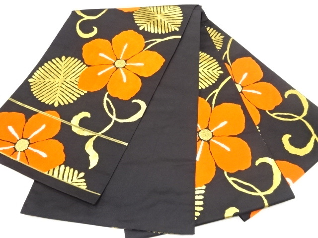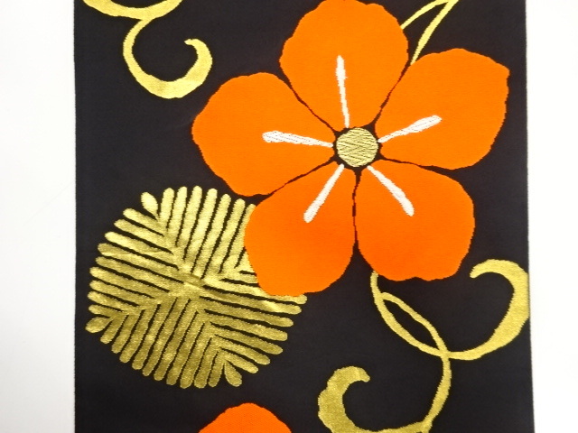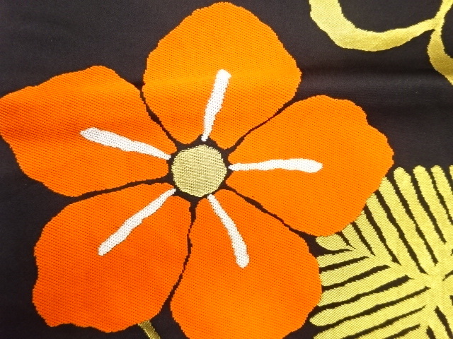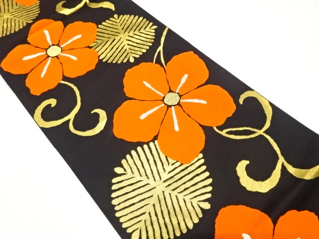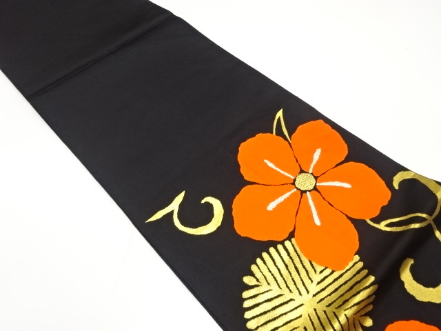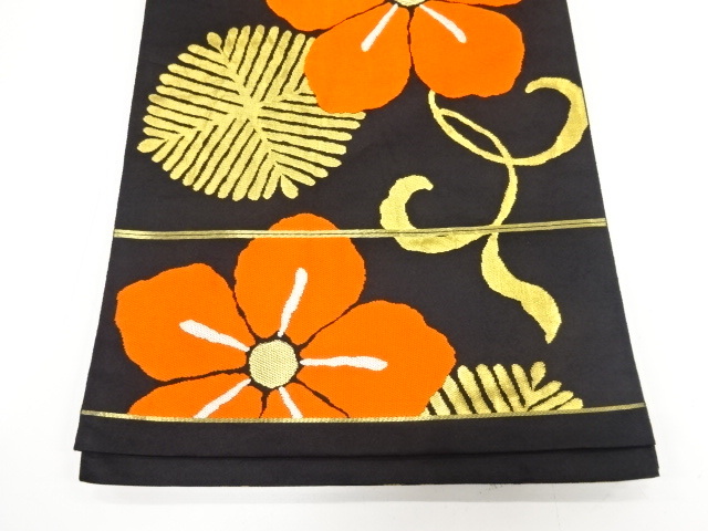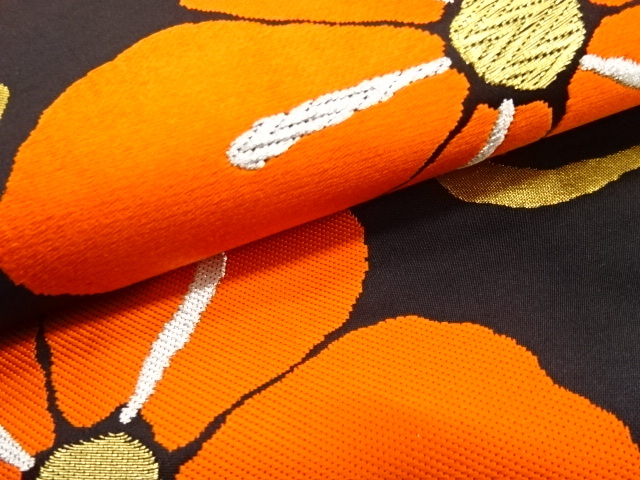 美品 若松に花唐草模様織り出し 袋帯 (AAG1K-014)