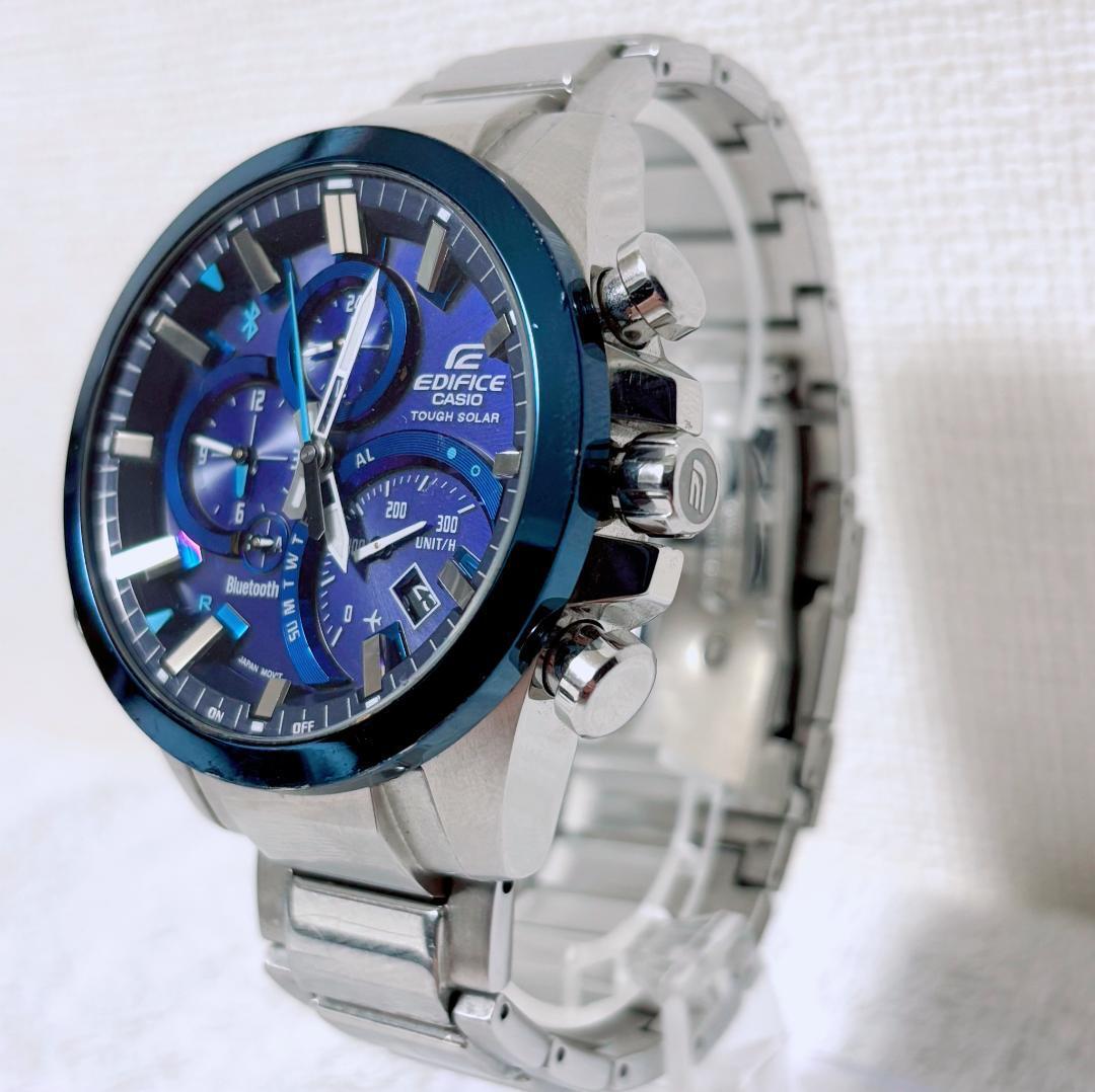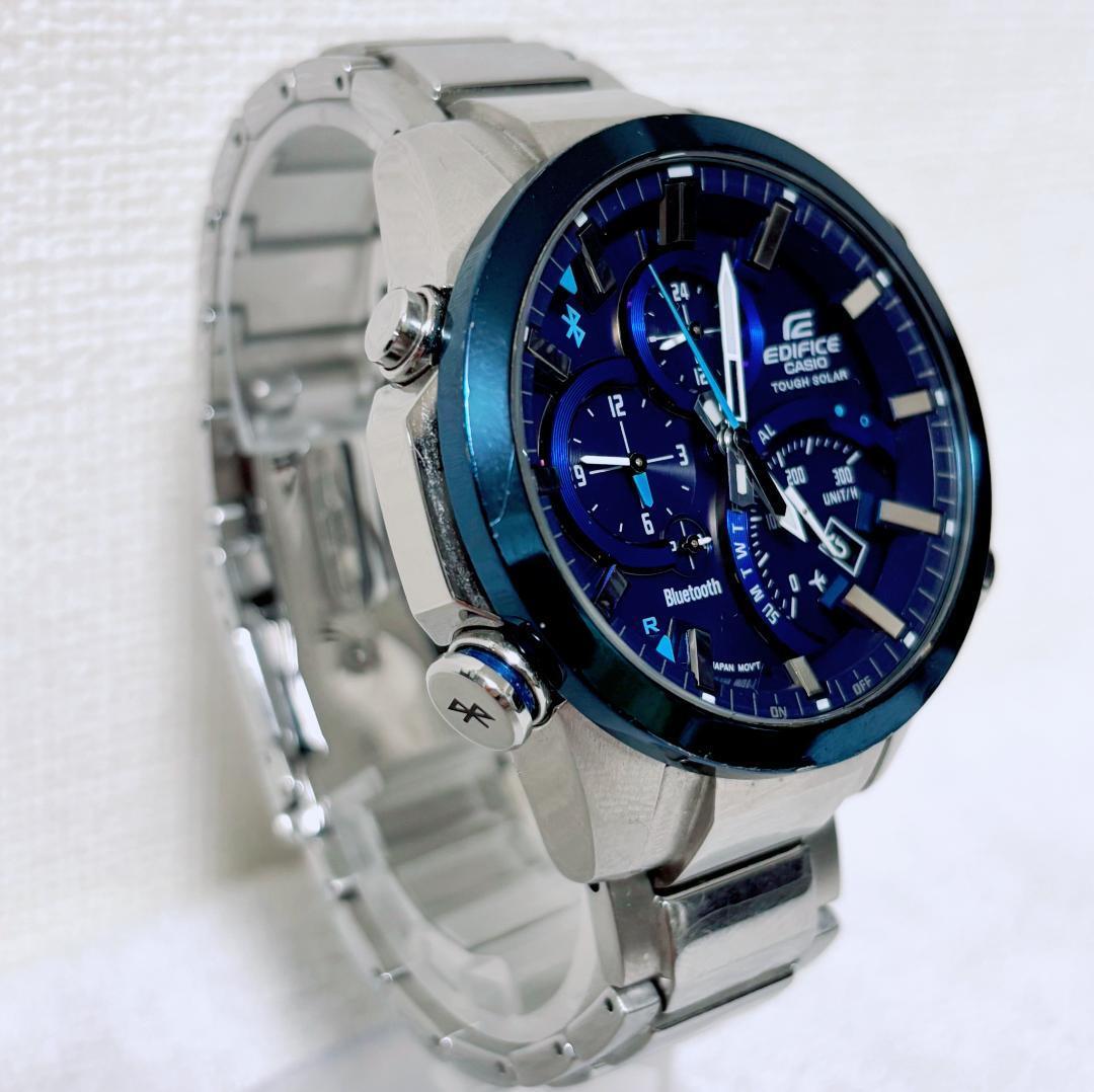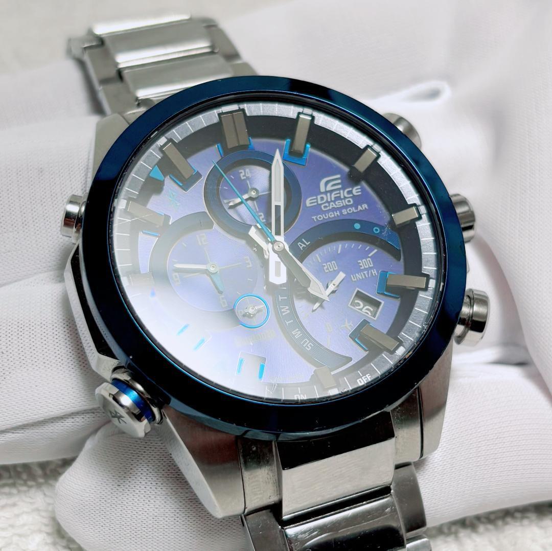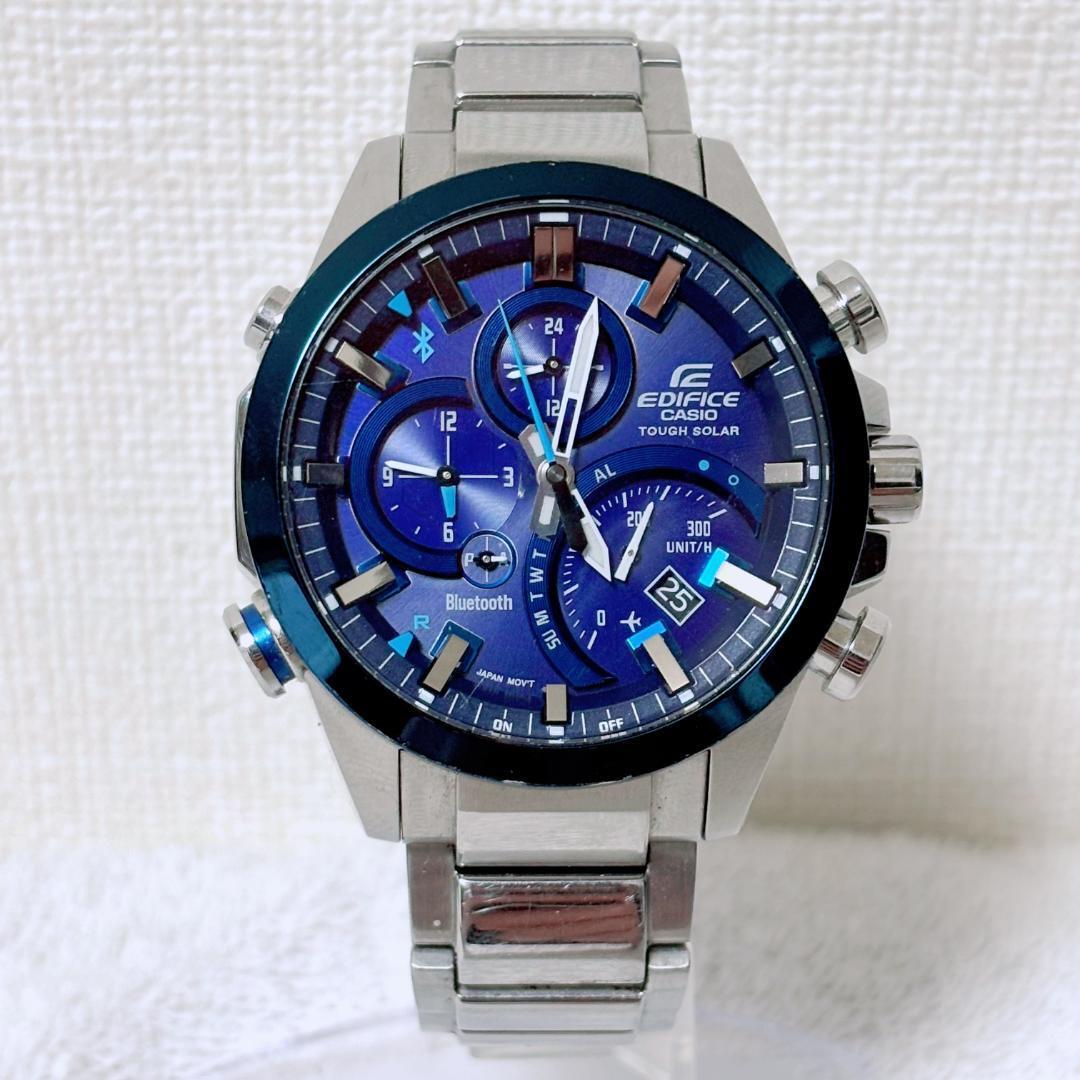 【レア】カシオ エディフィス EQB-500 ブルーダイアル 動作良好 腕時計 CASIO EDIFICE ブルー系 青 シルバー 銀 ソーラー充電 タフソーラー