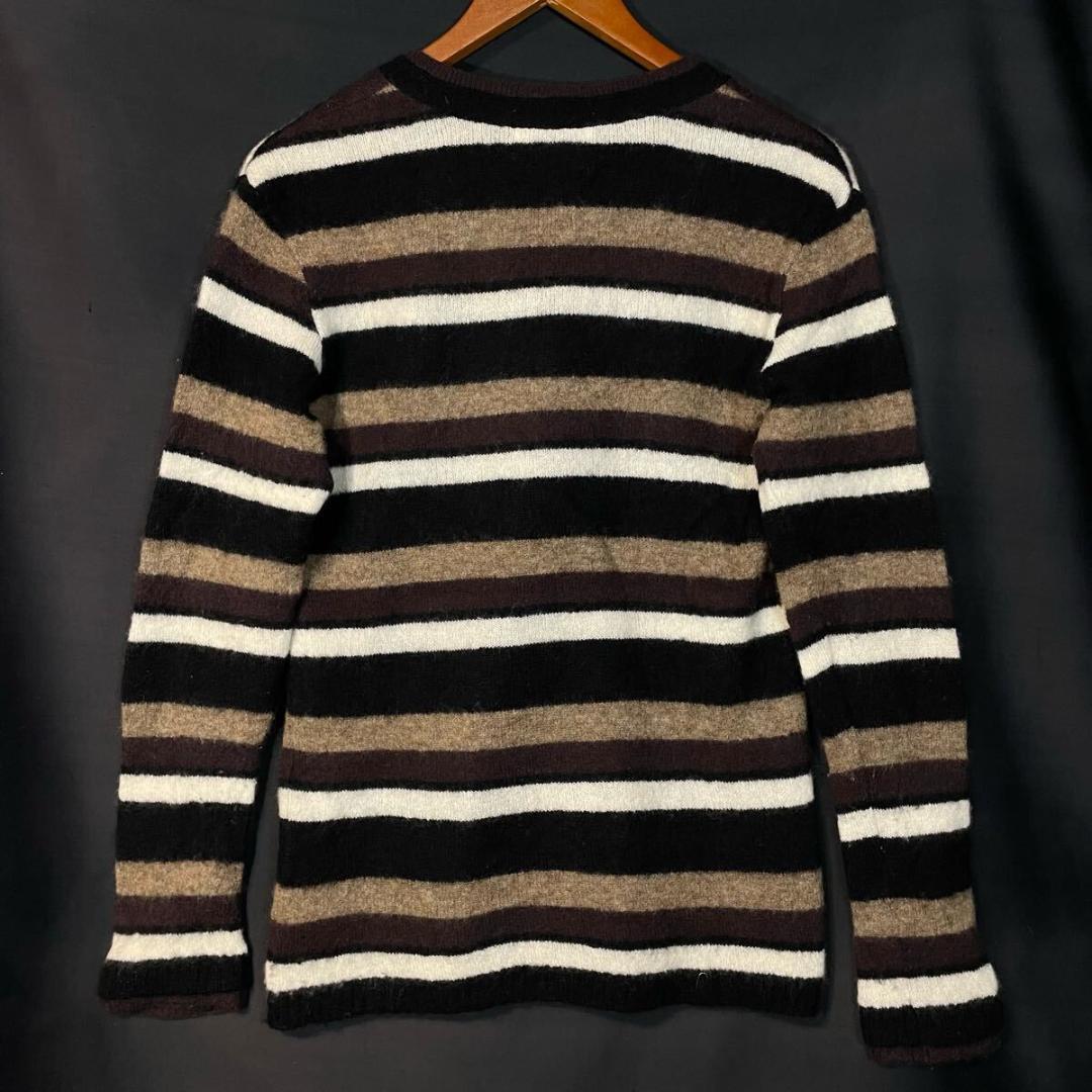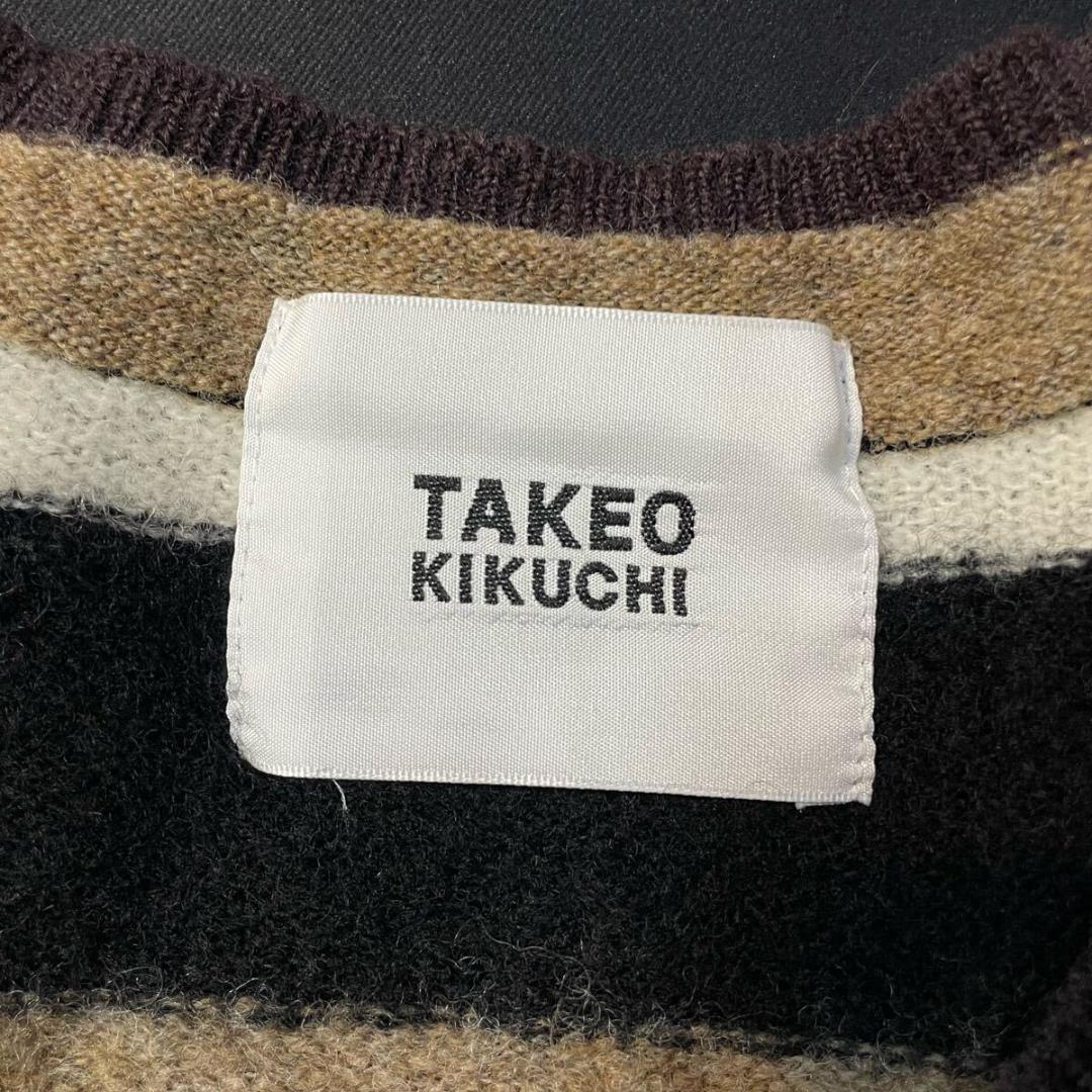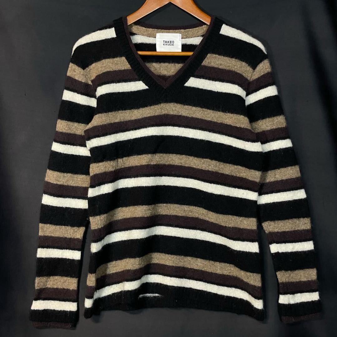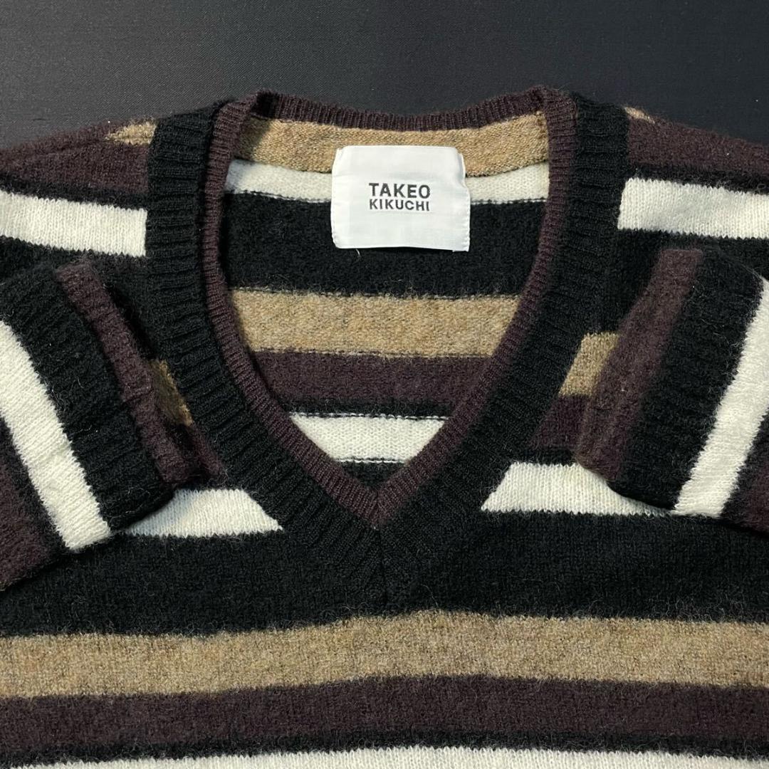 TAKEO KIKUCHI マルチボーダー Vネック セーター タケオキクチ ウール フェイクレイヤード 重ね着風 ニット マルチカラー 玉11011 日本製 MADE IN JAPAN