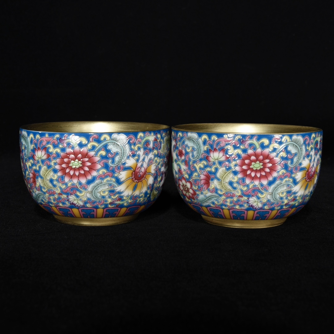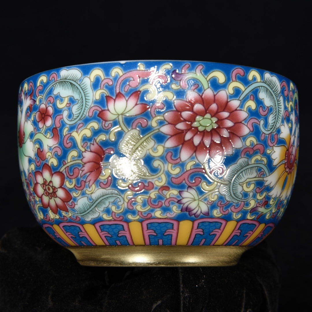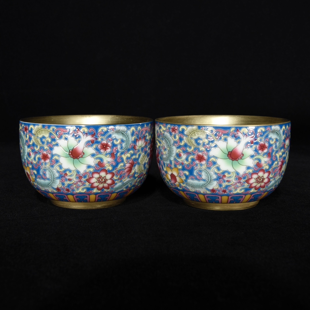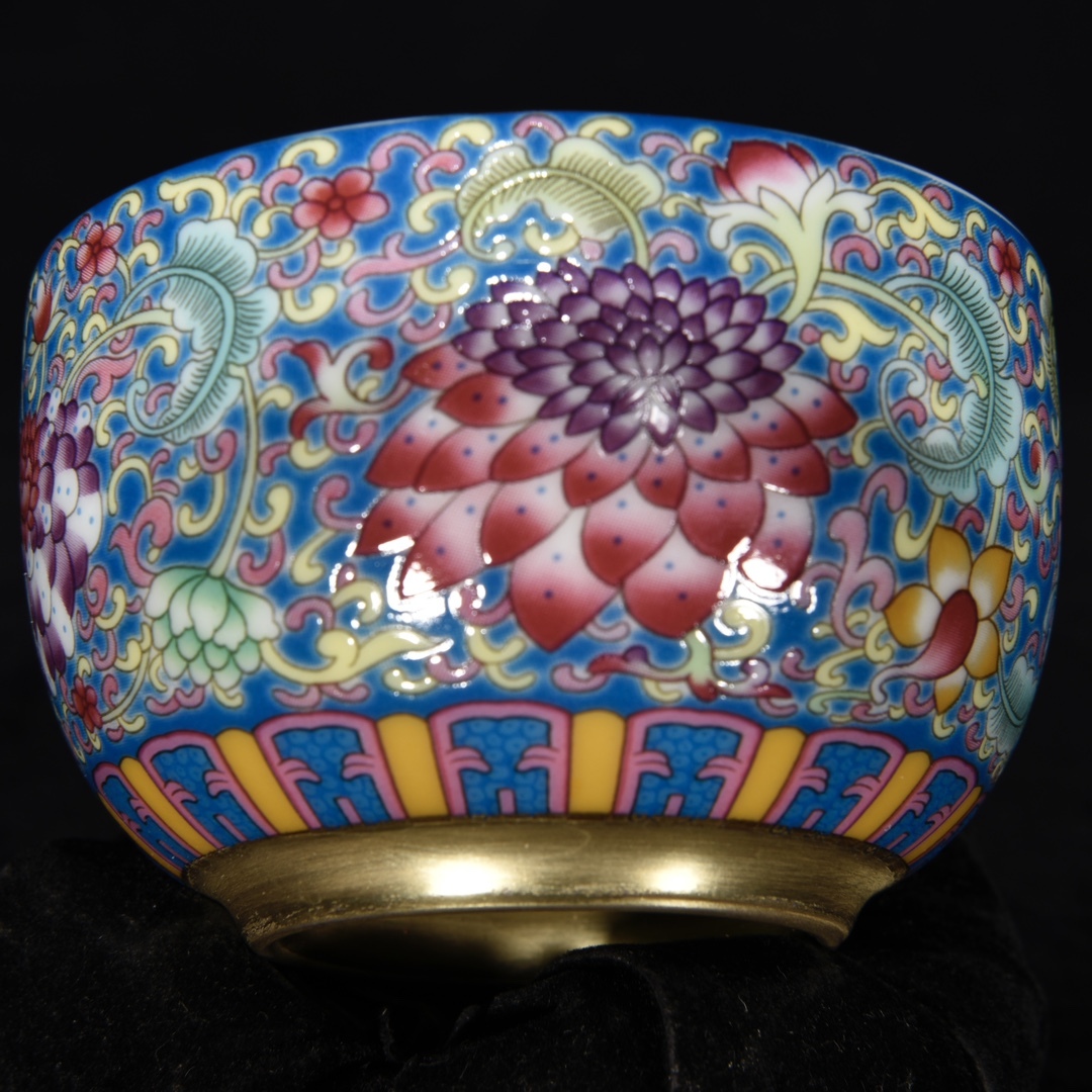 旧蔵 清 雍正年製 エナメル彩塗金纏枝花卉紋杯 陶芸 古陶磁器 中国磁器 極細工 中国古玩 骨董品 古美味 211