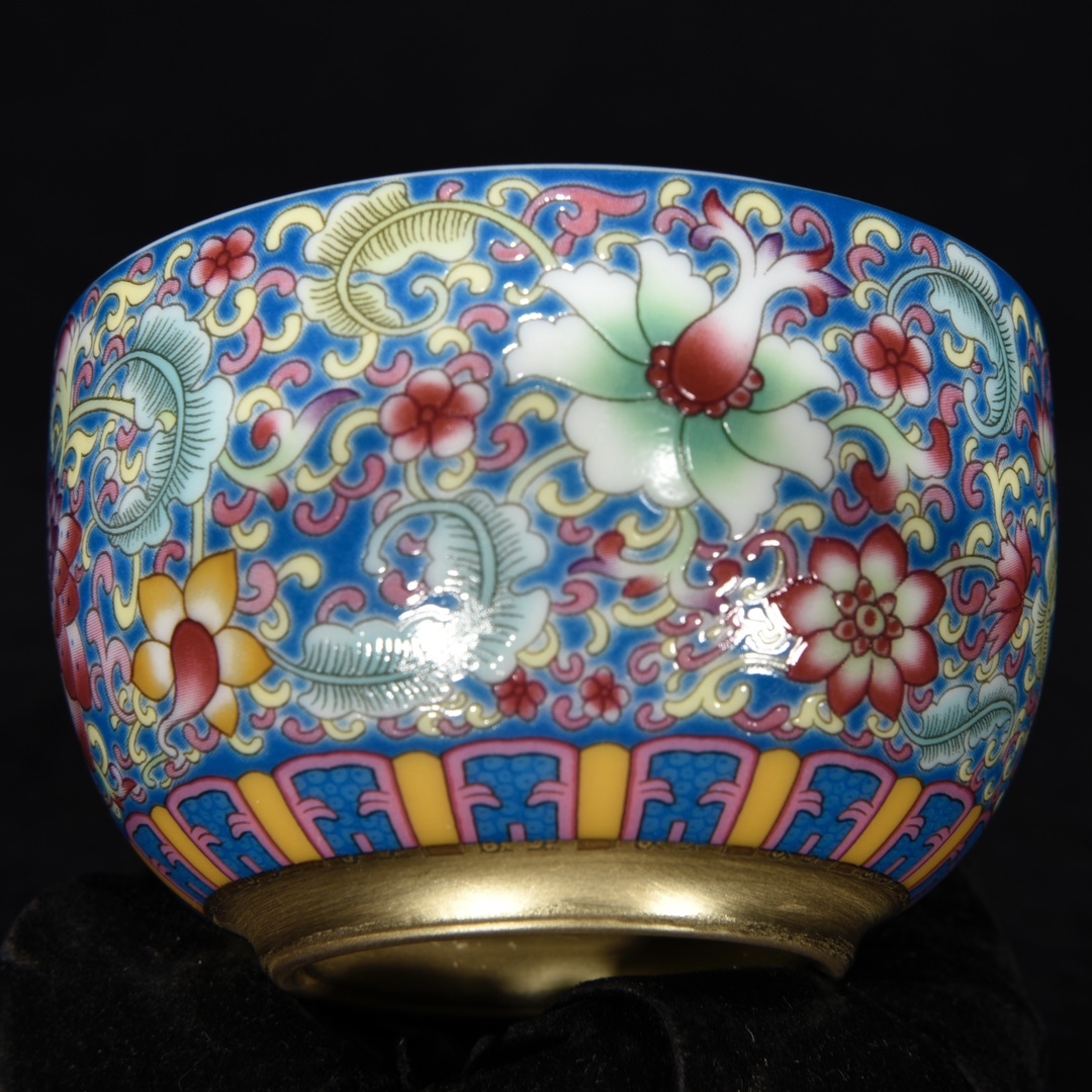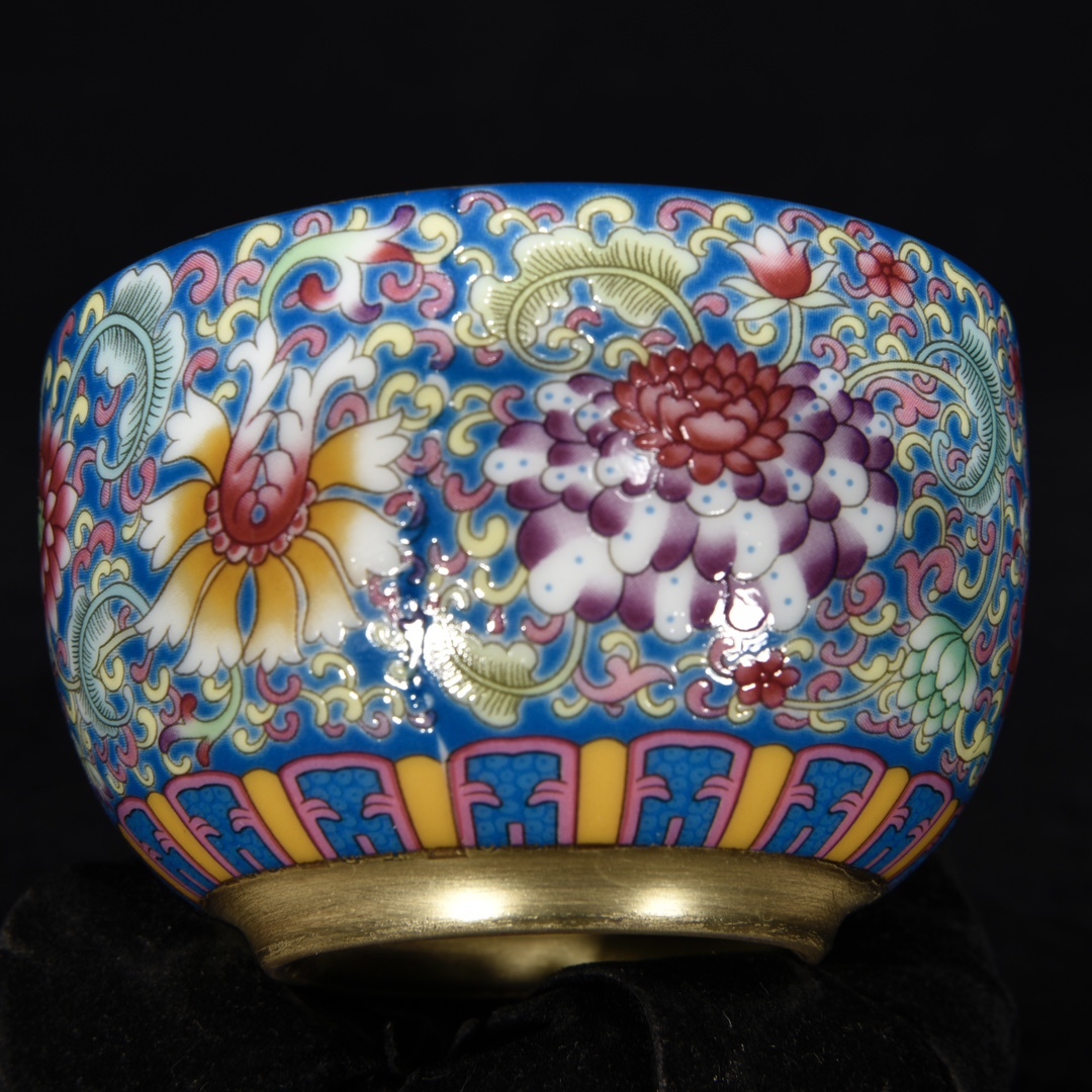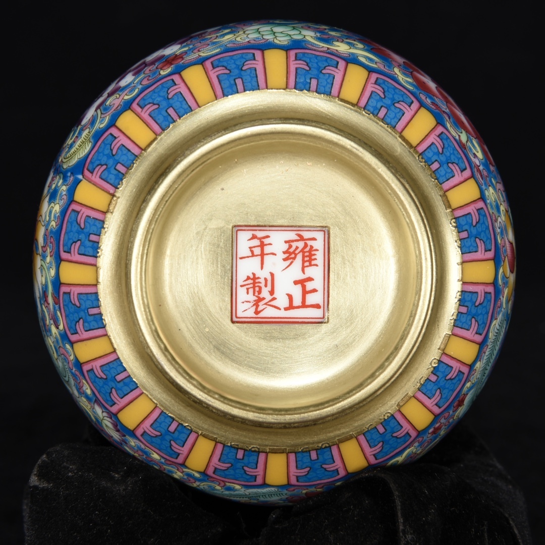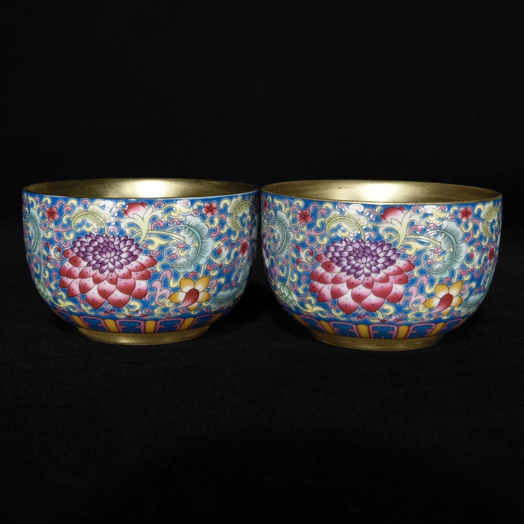 旧蔵 清 雍正年製 エナメル彩塗金纏枝花卉紋杯 陶芸 古陶磁器 中国磁器 極細工 中国古玩 骨董品 古美味 211