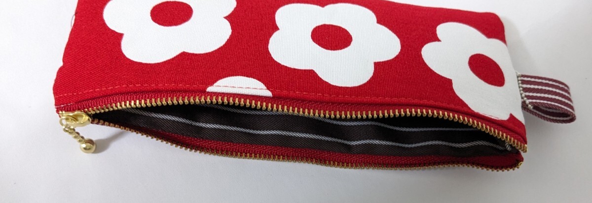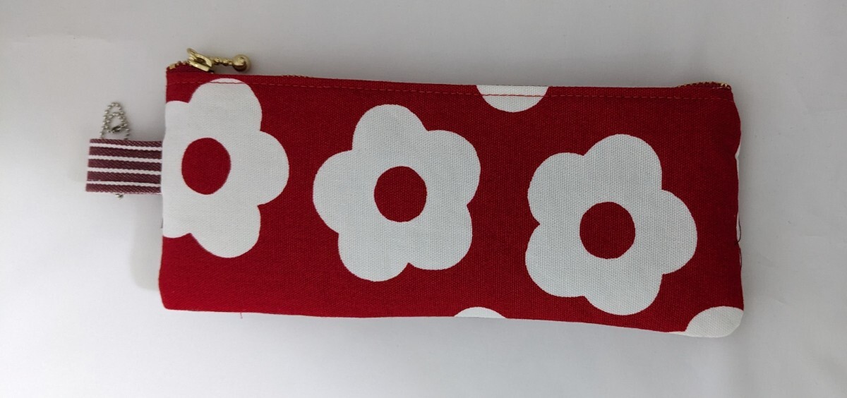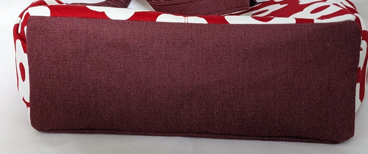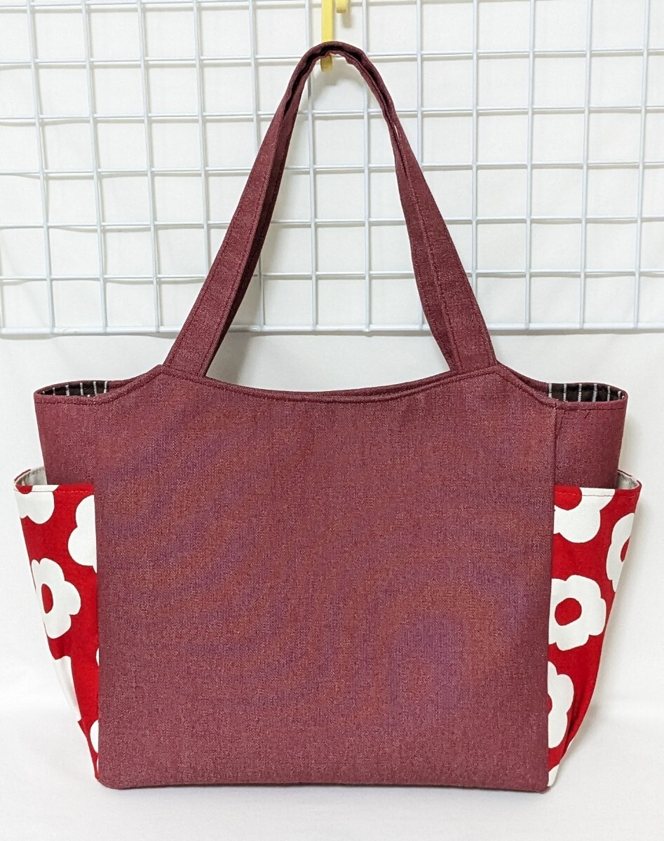 UWARI花柄・レッド・デニムガーネットのサイドポケット付きトートバッグ&ペンケース・ハンドメイド