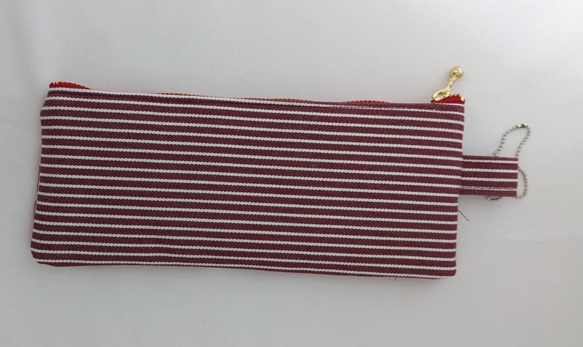 FUWARI花柄・レッドの生地をポケットにしたカラーデニム・ガーネット(赤紫)のサイドポケット付きトートバッグ&ペンケースです。