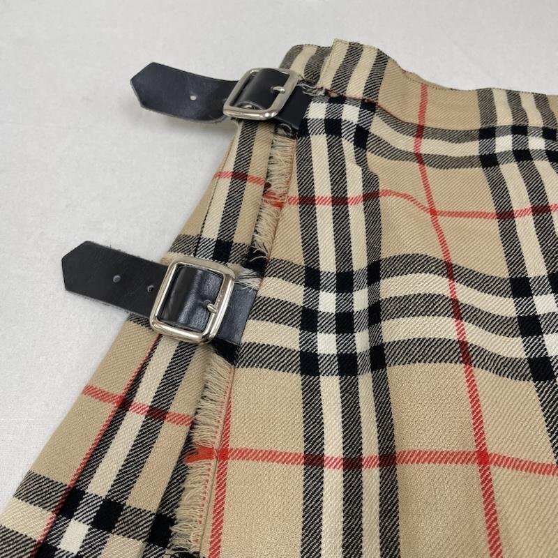 バーバリー 90s 巻き スカート ラップスカート プリーツ ウール100% ベルト ノバチェック 表記無し