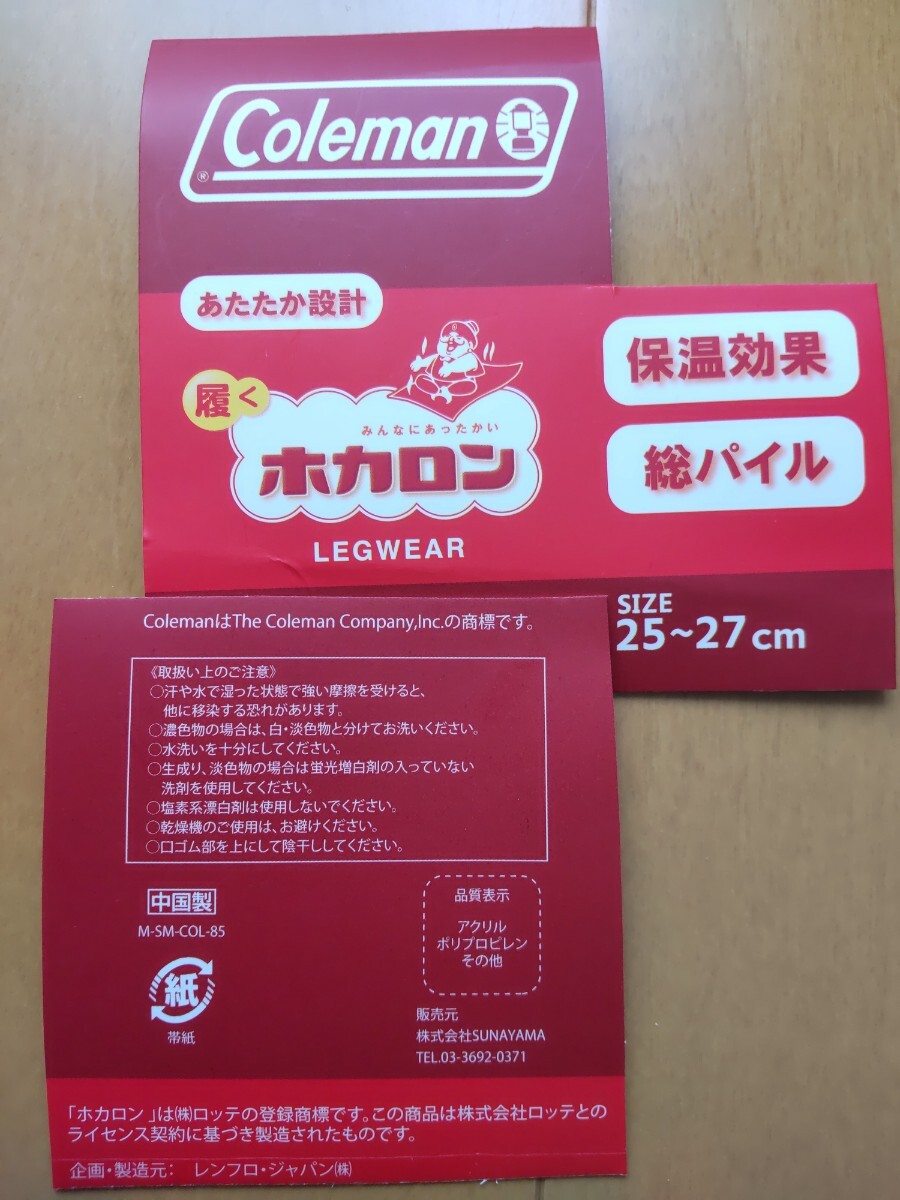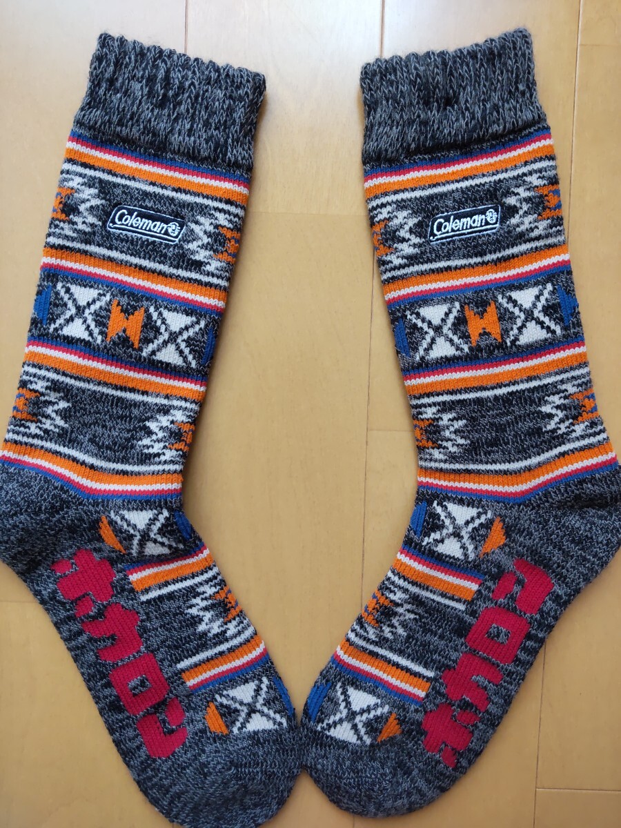 新品!25〜27cm コールマン刺繍 ホカロン パイルソックス 靴下です。タグはつきません。