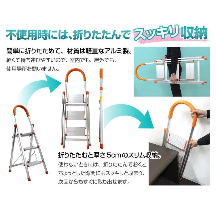 | 一家に一台あると便利! 照明器具の交換や、高い位置になる棚から物を取り出すときに便利な折りたたみステップ台です。 持ち手がついて安心!最上段まで上れますよ♪ アルミ製なのでとっても軽い!女性でも余裕で持てる! サッと持ち運べて移動もラクラク! 未使用時はコンパクトに折りたたみ、省スペースに収納できます。 【仕様】 サイズ(約):幅410mm×奥行520mm×高さ1165mm 収納時サイズ(約):幅55mm×奥行410mm×高さ1260mm カラー:オレンジ、ブルー、ブラック 材質:アルミ 重量(約):3kg 耐荷重(約):130kg ・海外製品で、簡易梱包での輸入のため風防に擦れや多少の小キズなどがある場合がございますが、商品自体には問題ありませんのでご了承下さい。 ・仕様・デザインは改良のため予告なく変更することがあります。 (ハシゴ 梯子 伸縮 アルミはしご アルミ ラダー 脚立 折りたたみ 軽量 コンパクト 避難 送料無料 WEIWEIホールディングス) ※大型商品のため、特別中継料が適用されます。(北海道+1.100円/沖縄本島+2.200円/離島+2.200円) |