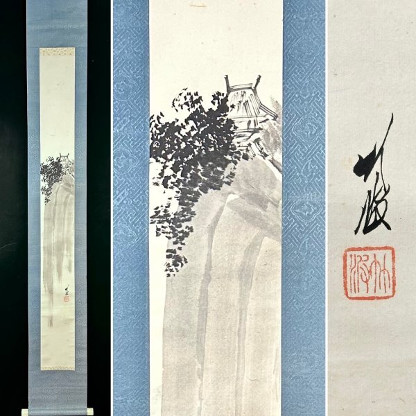 s61H10【真作】尾竹竹坡 山水画 掛軸 紙本 肉筆 山水 明治-昭和期の日本画家 川端玉章に師事 越堂の弟国観の兄 新潟の人
