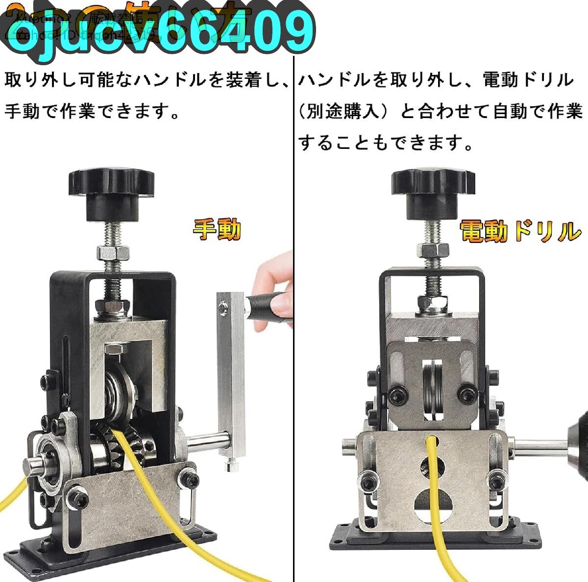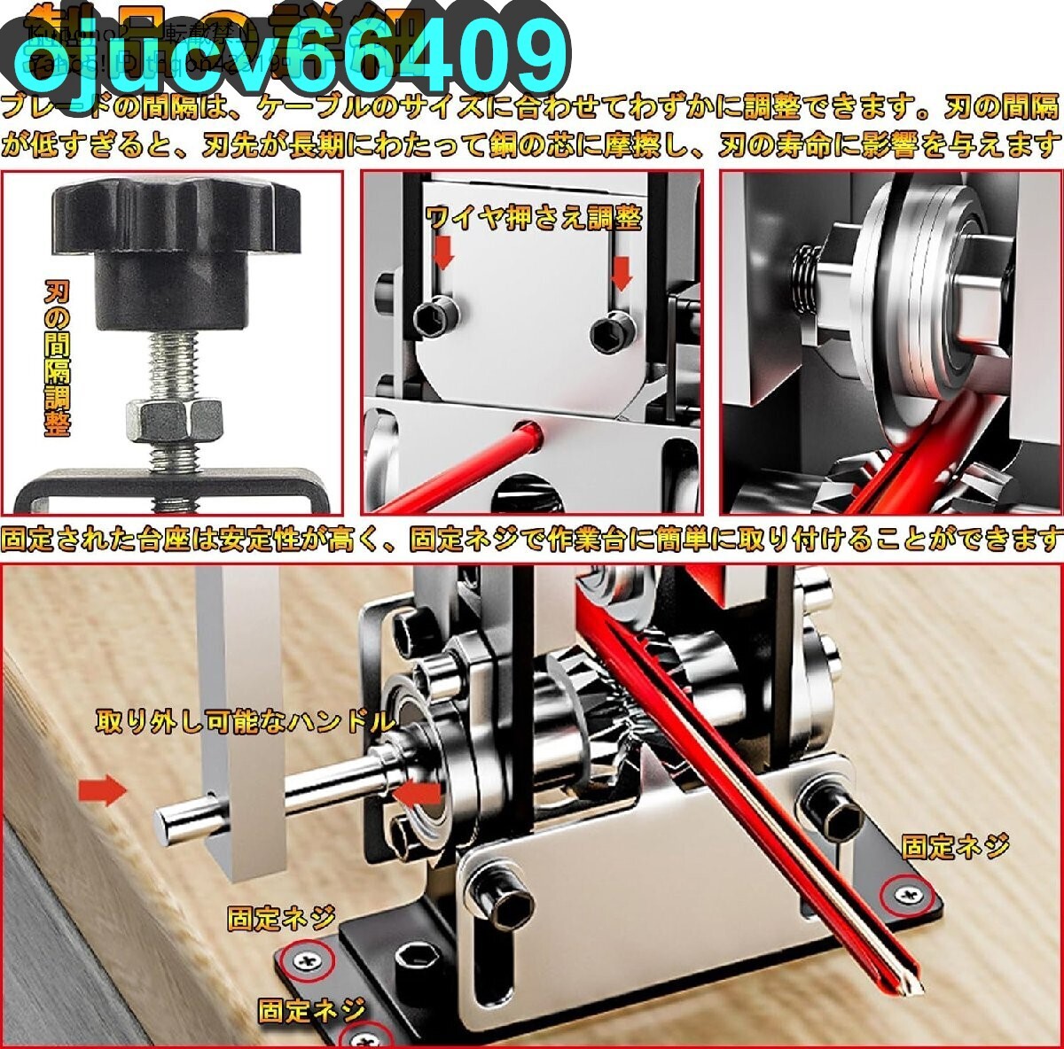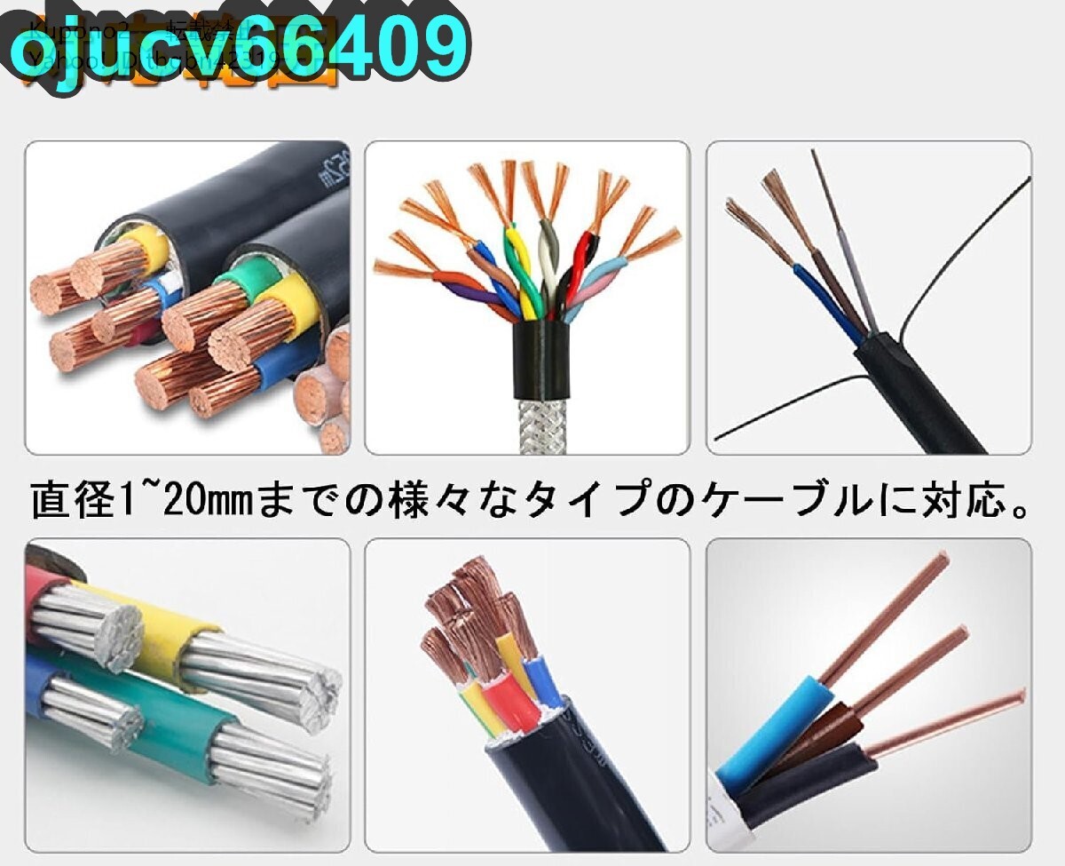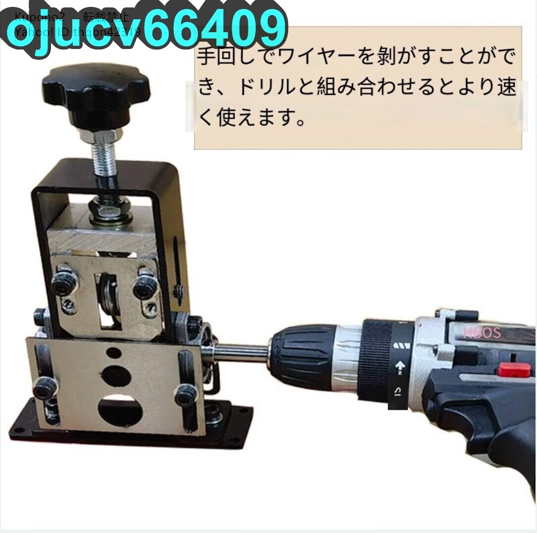 ★状態:新品未使用 状態:新品未使用 ★カラー:画像参照 対応範囲】直径1~20mmまでの様々なタイプのケーブルに対応。3つの異なるサイズの入口があり、ケーブルの直径に応じて入口を選択できます。 【持ち運びが簡単】コンパクトで持ち運びしやすく、家庭用にピッタリなケーブルピーラーです。また、様々な外出作業が必要な場合には、この手動ケーブル剥離機も適しています。 【2つの使い方】取り外し可能なハンドルを装着し、手動で作業できます。ハンドルを取り外し、電動ドリル(別途購入)と合わせて自動で作業することもできます。使いやすく、作業効率が大幅に向上します。 【刃の間隔調整可能】ブレードの間隔は、ケーブルのサイズに合わせてわずかに調整できます。刃の間隔が低すぎると、刃先が長期にわたって銅の芯に摩擦し、刃の寿命に影響を与えます。 【安定性】固定された台座は安定性が高く、固定ネジで作業台に簡単に取り付けることができます。