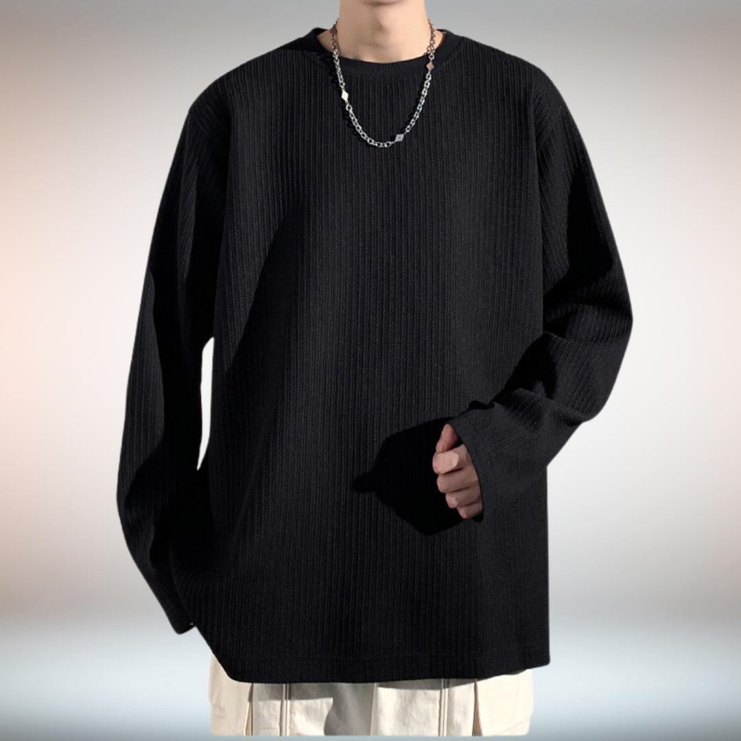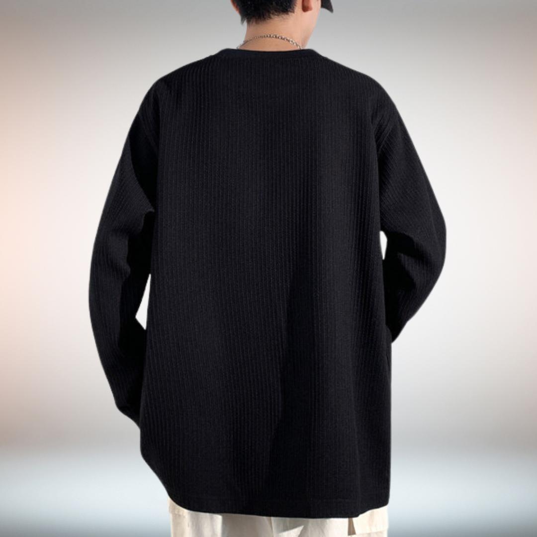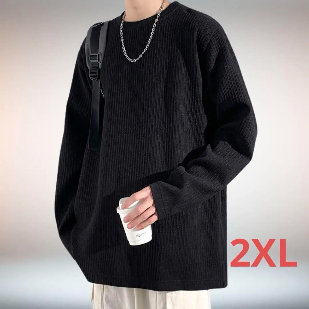シンプルで着回しやすいメンズ長袖カットソー(ブラック・2XLサイズ相当)です。
