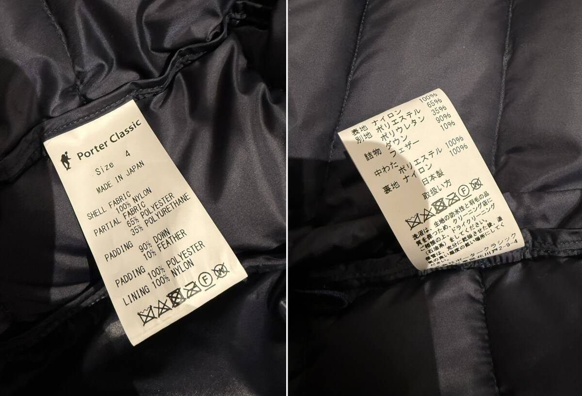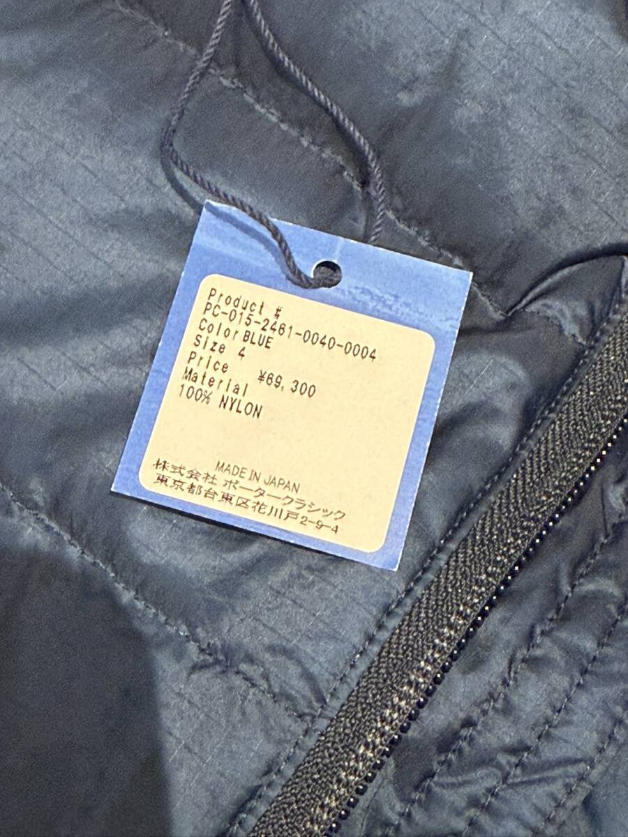 未使用 定価6.9万 Porter Classic LINER NYLON INNER DOWN ZIP UP VEST 4 XXL XL BLUE ポータークラシック インナーダウンベスト