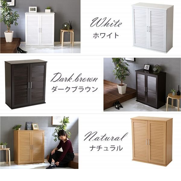 | 【ポイント】 ①省スペースでも大容量収納を実現しました。 ②有効内寸が(約)30cmあるので、男性用の靴も収納可能です。 ③ルーバー扉仕様だから通気性抜群です。 ④可動棚5枚付きだから、棚の高さを調節してスペースを有効活用できます。 ⑤カラーは落ち着いた3カラー展開です。 |