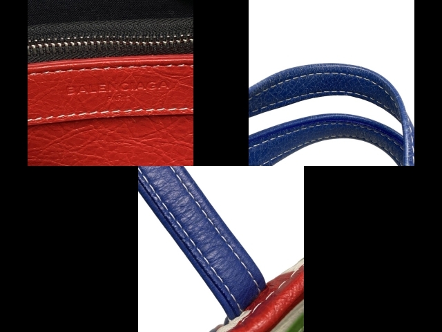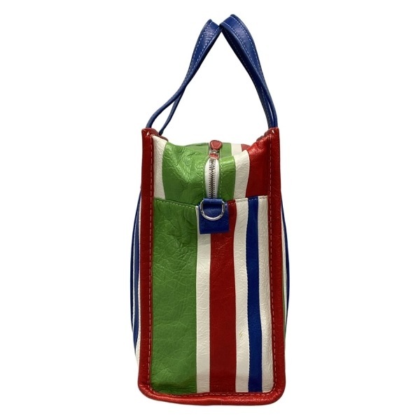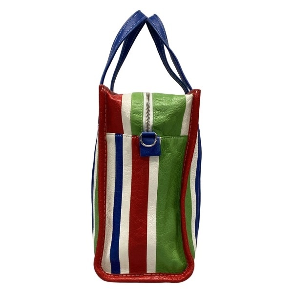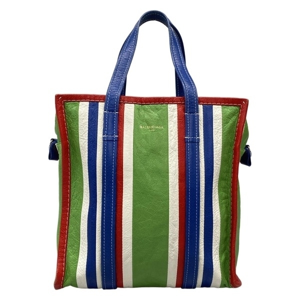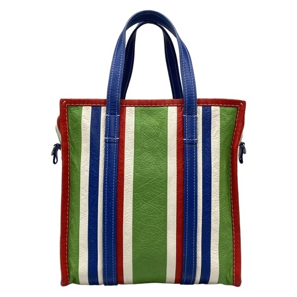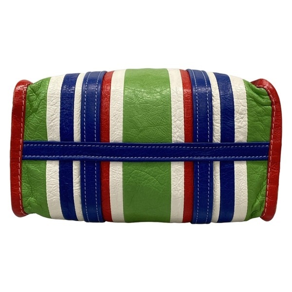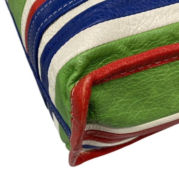 バレンシアガ BALENCIAGA ハンドバッグ 443096 バザールショッパーS レザー ライトグリーン×白×マルチ ストライプ バッグ