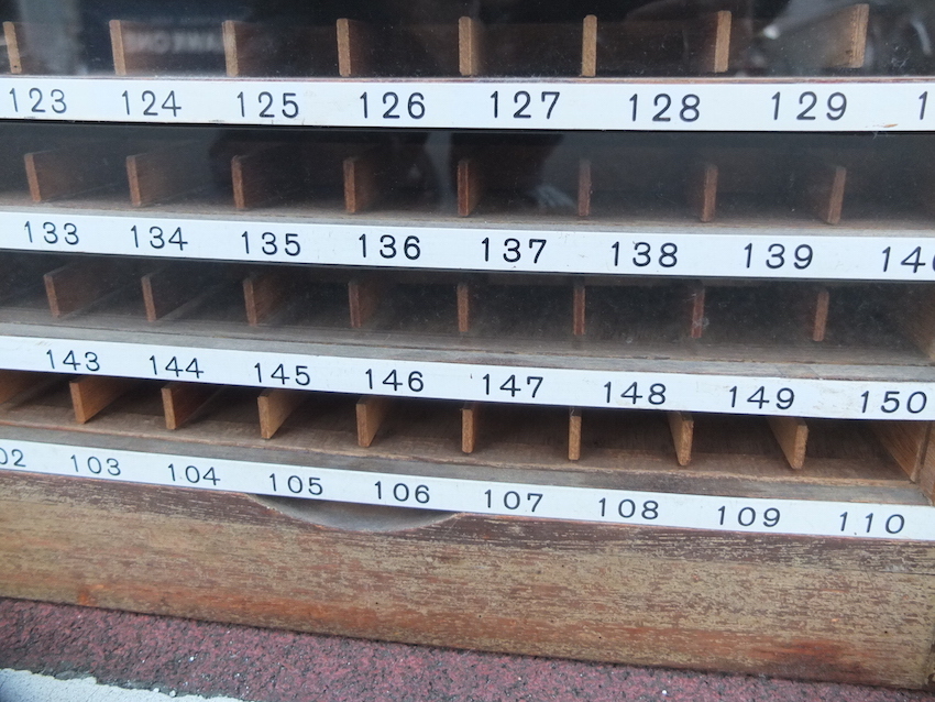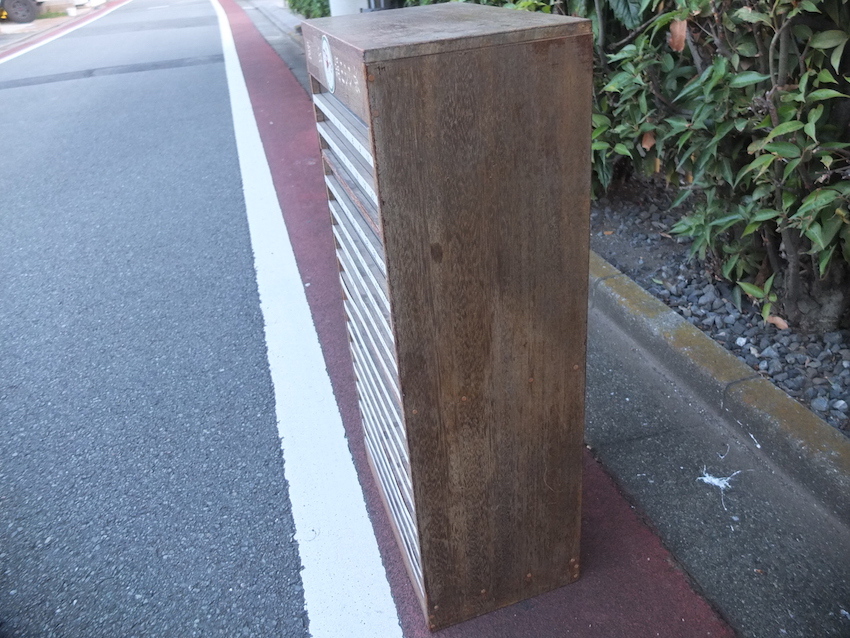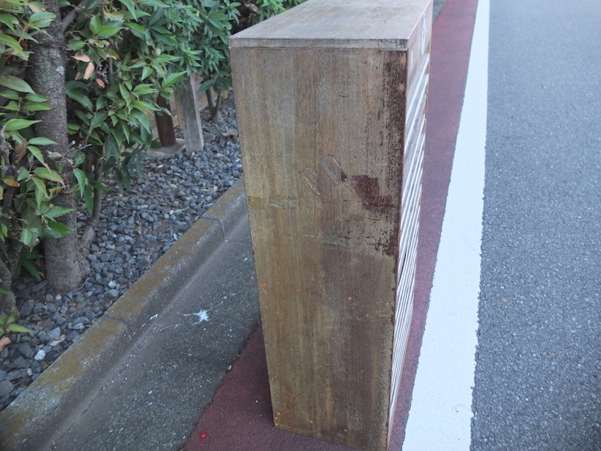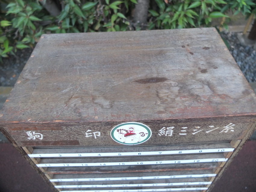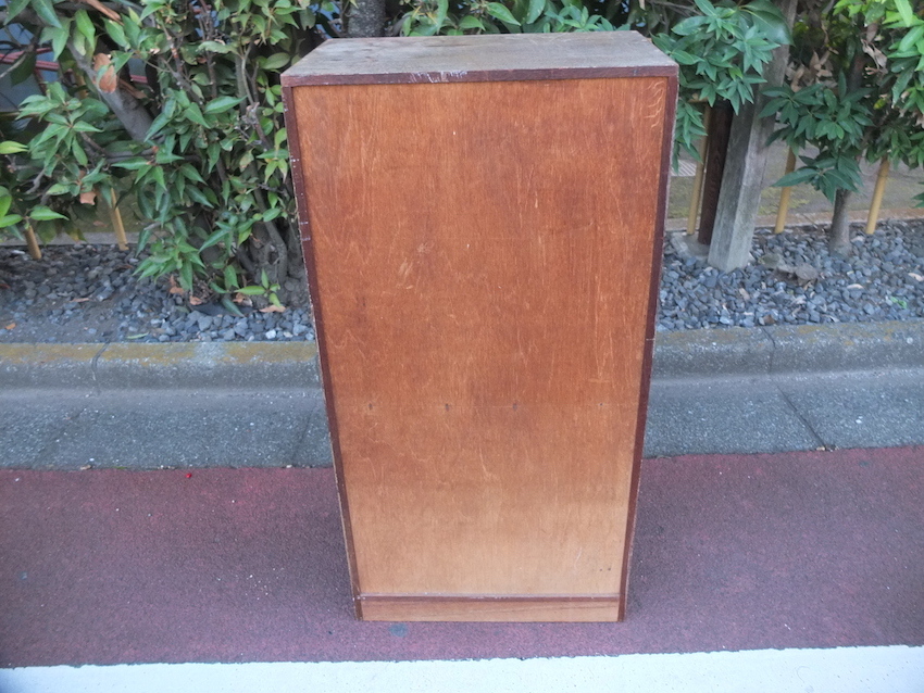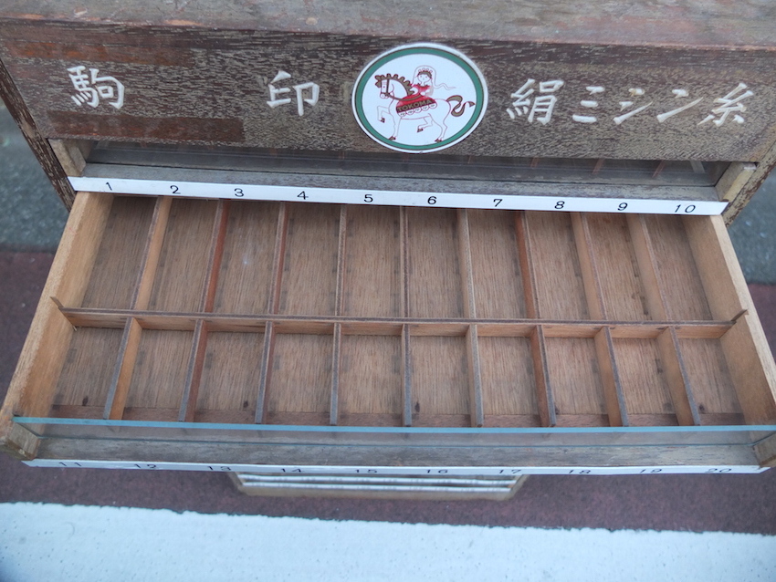 ビンテージ「駒印絹ミシン糸 収納ケース」になります。サイズはw47cm d28cm h91cmになります。素人採寸ですので多少の誤差はあると思います。年代物ですので、傷、汚れは非常に多く確認出来ます。ナンバリングのプレートの欠品、手書き等も確認出来ます。一番下の収納箇所のガラス欠品しております。ガラスは溝に挟まっているだけですので、ガラスを別途購入し同じサイズにカットすれば修復は安易だと思われます。ナンバリングされてます白い箇所もプラスチック?的な素材で、類似品で問題なければホームセンターなどで入手、自作は出来そうです。ジャンク品としての出品ですので商品保証は一切ございません。落札後はN/C N/Rでお願い致します。新品同様をお探しの方や、神経質な方はご入札をお控えください。当方のいうジャンク品とはいわゆるゴミの事です。見落としもあるかもしれませんが色味や状態を含め、現状優先となります。ご理解の程よろしくお願い致します。基本的に素人の家にある不要物の出品になりますので、絶対に失敗されたくない方は当方からの購入はオススメいたしません。現物の確認出来るショップ様での購入を御勧めいたします。また、最近落札後に色々と商品についてのご質問や要望をされる方が多くいらっしゃいますが、ご質問がある方は、必ず、オークション期間内、ご入札前にご質問お願いします。入札後、落札後はご遠慮ください。ご入札前に下記の注意事項は必ずご確認下さい。