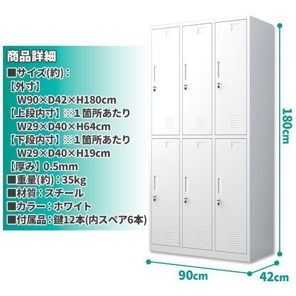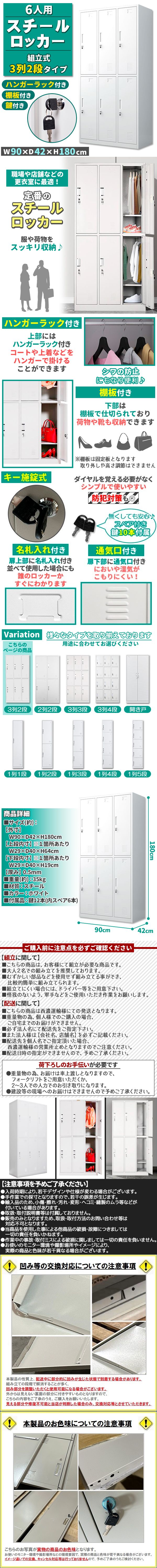 ロッカー スチールロッカー 6人用 ホワイト 白 鍵付き スペアキー付き 3列2段 スチール製 収納 オフィス 事務所 会社 店舗 学校 業務