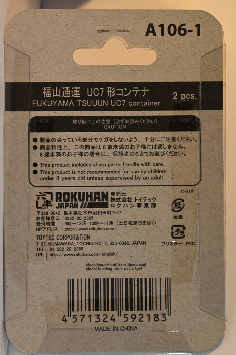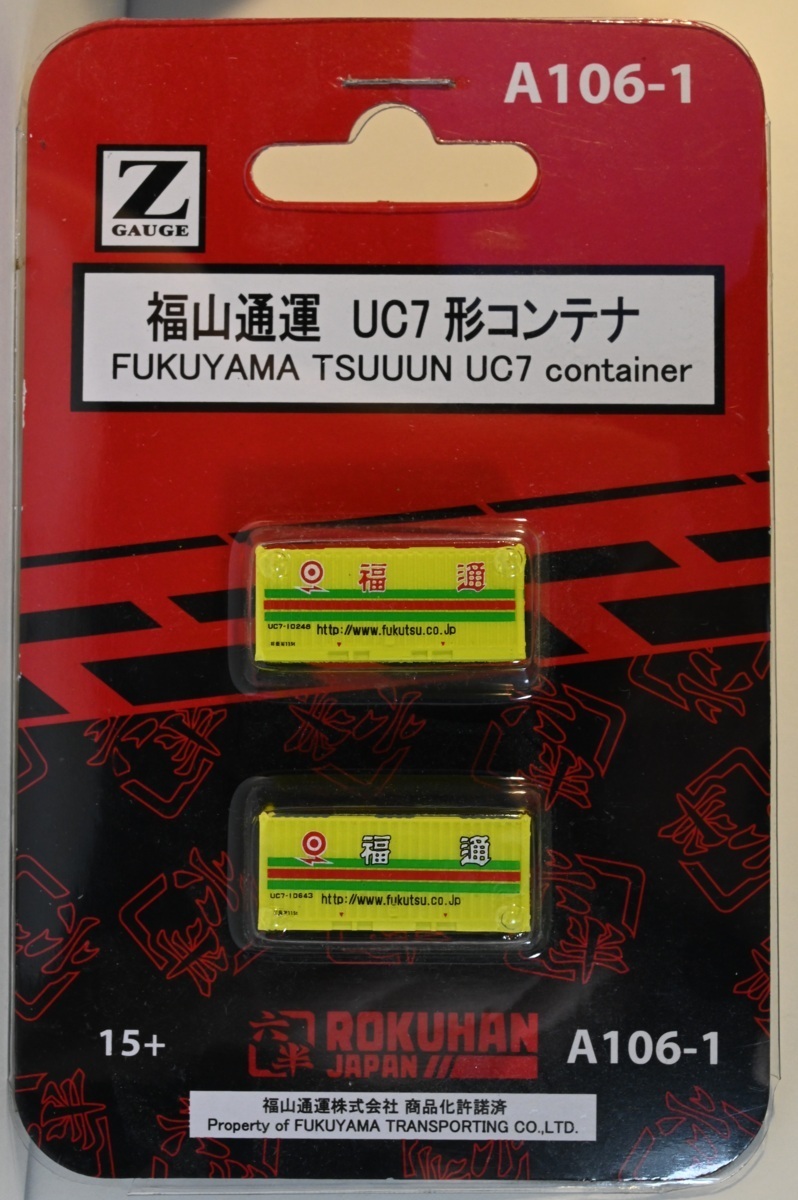 写真のROKUHAN(六半)Zゲージ用、20フィートコンテナ2個入りパッケージ.1個です。