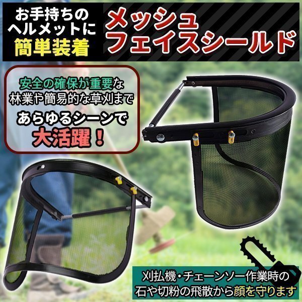 草刈やチェーンソー使用時の必需品!ヘルメット装着用 メッシュ巾広防護面