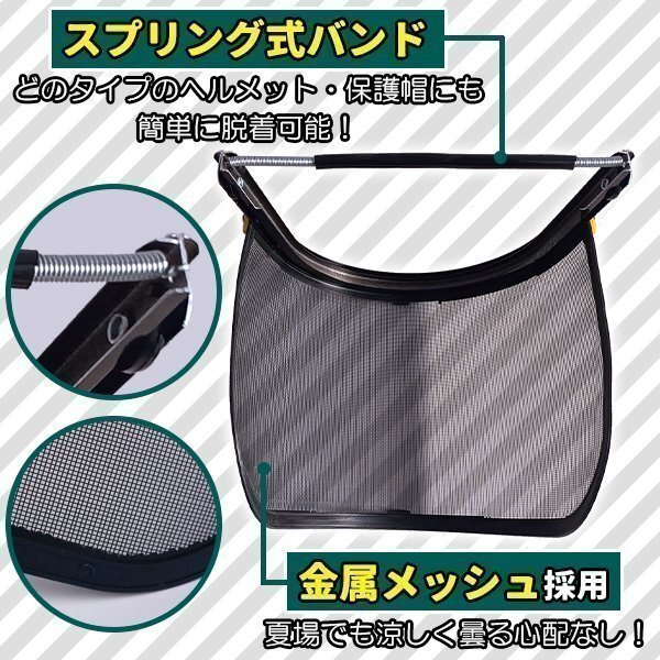 草刈り 芝刈り 防護 マスク メッシュプロテクター ヘルメット装着用 メッシュ巾広防護面 園芸 作業 頭部 保護 草刈機 刈払機 草刈り機