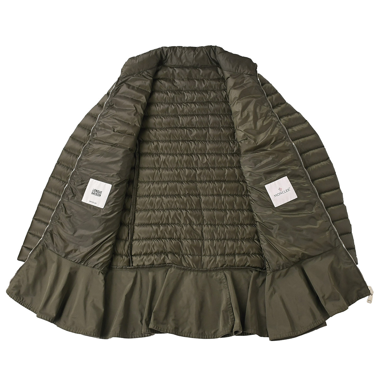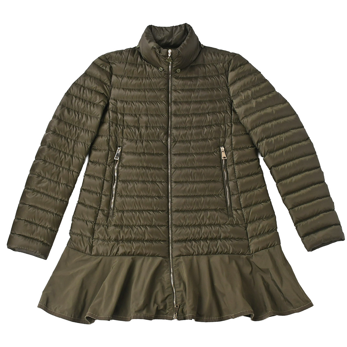 裾に広がるフリルがアクセントになった、モンクレールのダウンコートが入荷しました。 上質なダウンを使用し、合わせやすいカーキグリーンカラーが人気のアイテム。 軽量なので、普段使いから旅行の際にも便利なおすすめの逸品です。 |