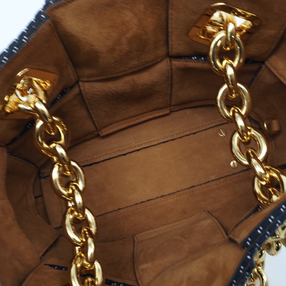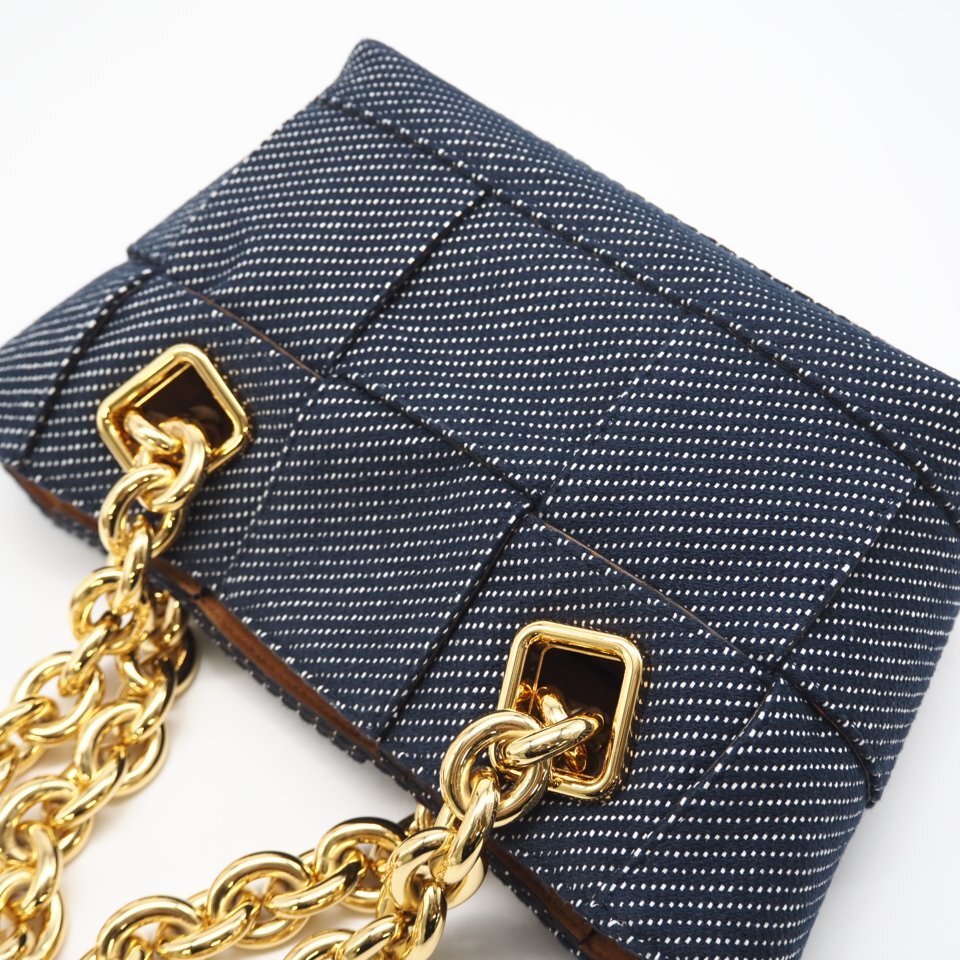 ★3日以内返品可★ BOTTEGA VENETA ボッテガ ヴェネタ マキシイントレチャート アルコ デニム ネイビー トートバッグ 極美品