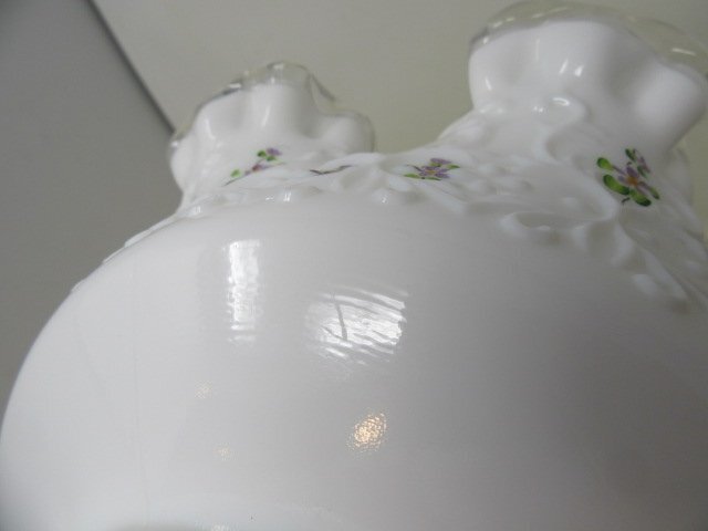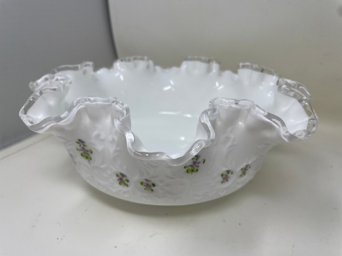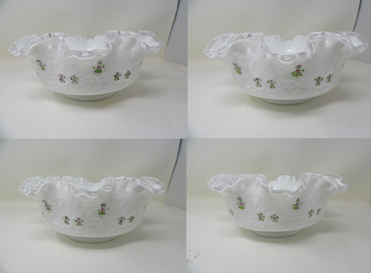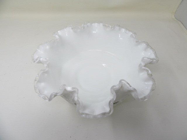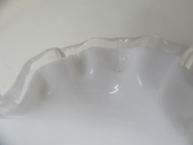 ◆FENTON フェントン ボウル シルバークレスト フリル 花柄 食器 白 ホワイト 中古◆10584