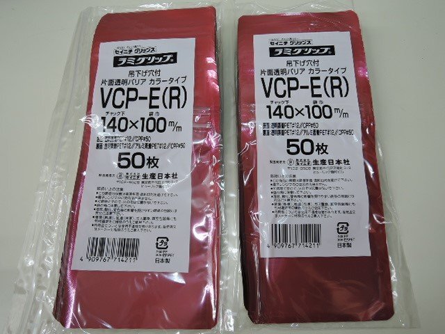 | セイニチ グリップス ラミグリップ 吊り下げ穴付 片面透明バリア カラータイプ VCP-E(R) レッド 140×100mm 50枚入×2袋セット/未使用品 | ||||