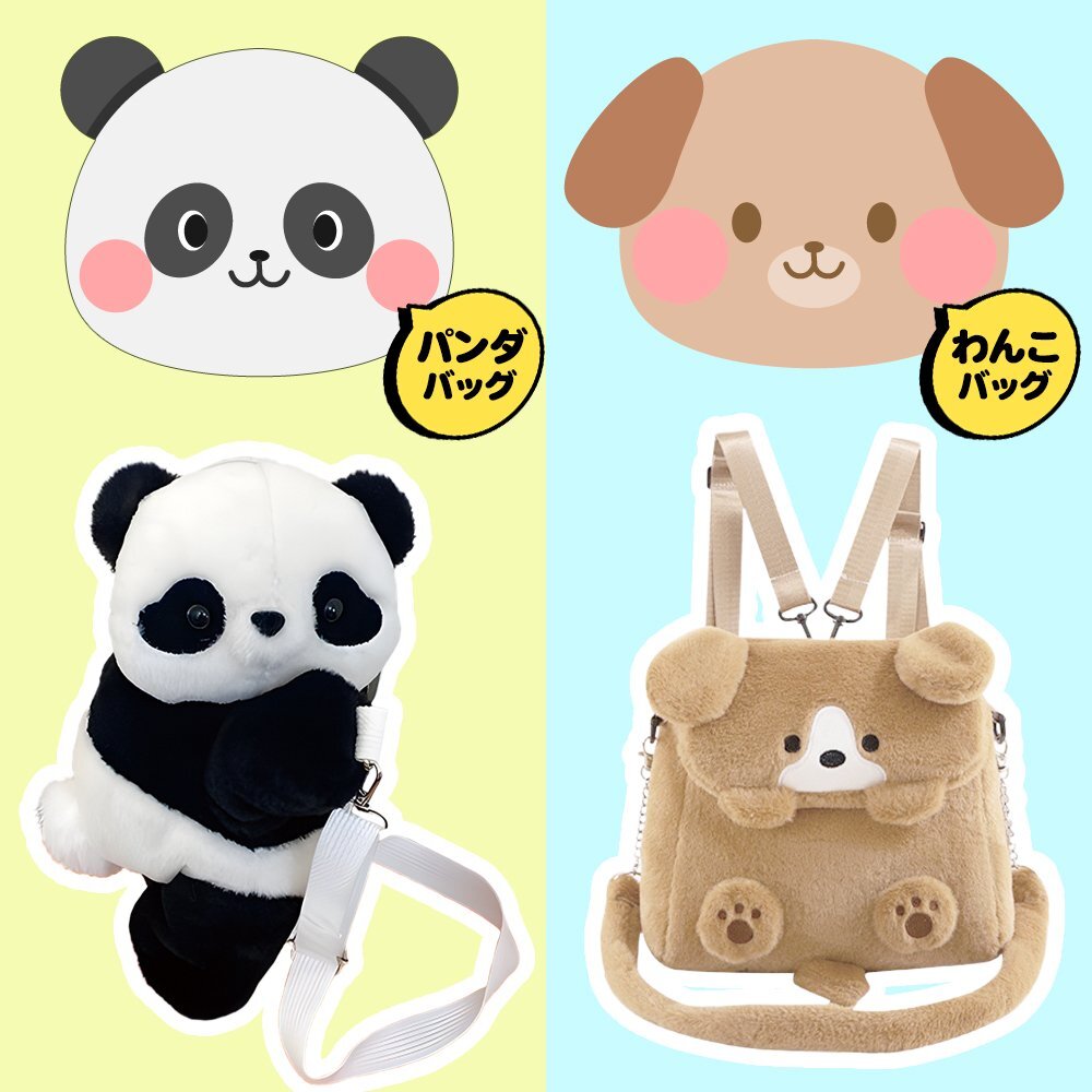 | ■2WAYで使いやすい リュックとして背負ったり、肩掛けバッグとして持ったり♪ シーンに合わせて使い分け可能。 可愛さと便利さを両立しています。 ■選べるかわいいデザイン 犬とパンダのモチーフで、見た目もキュート。 お子様にも、大人の方にもおすすめです。 普段使い、お出かけのお供にぴったりのバッグです。 |