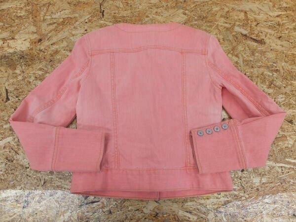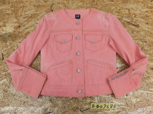 GAP ギャップ レディース ノーカラー ストレッチ デニムジャケット 小さいサイズ XXS サーモンピンク です。