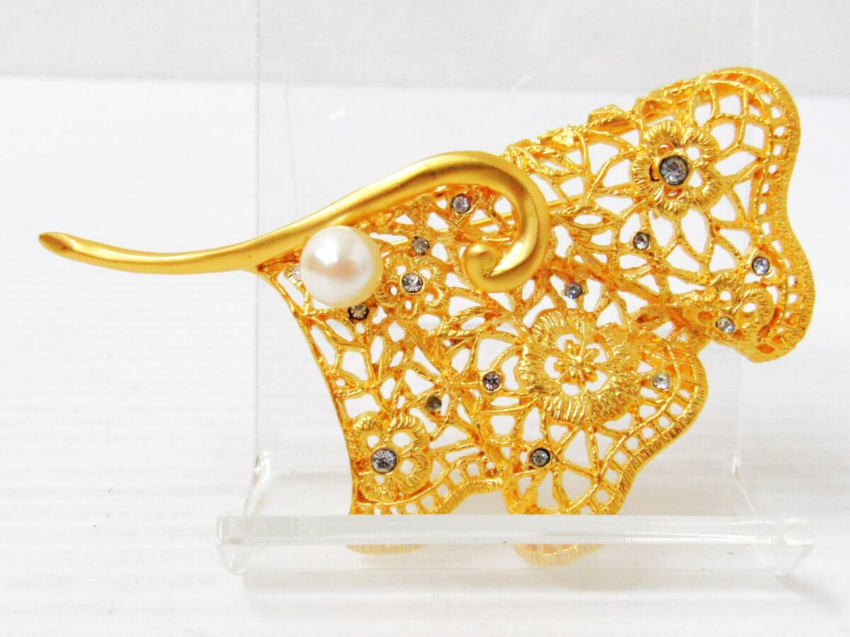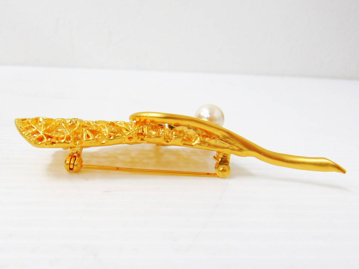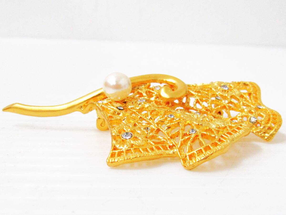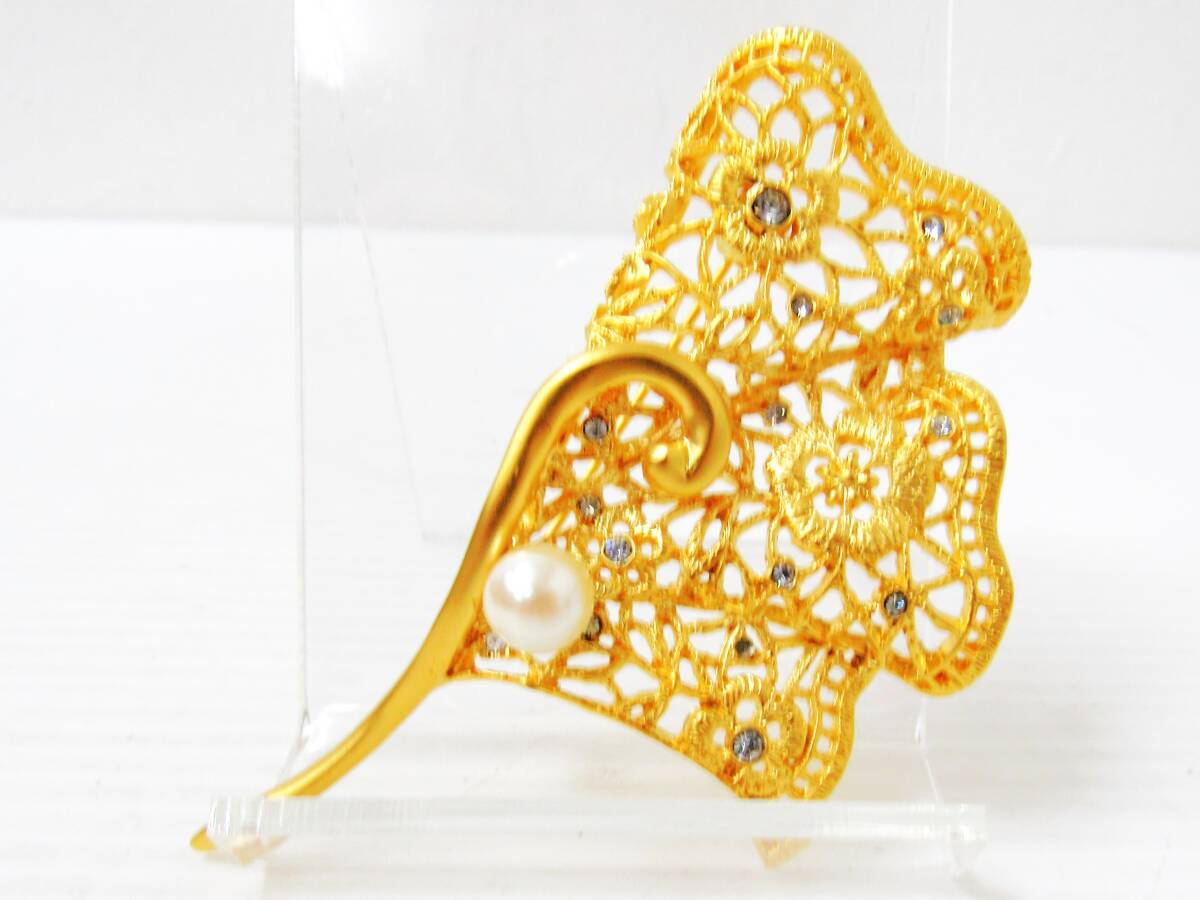 ブローチ いちょう アクセサリー ゴールドカラー 真珠 ストーン 銀杏 レディース ファッション コレクション kdh