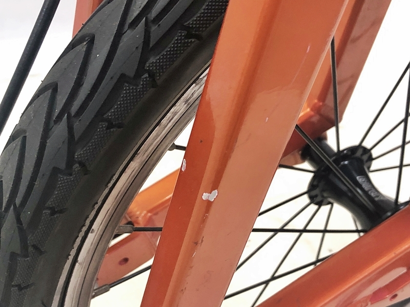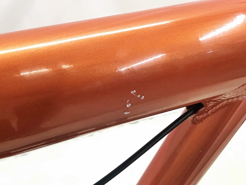 フレーム、その他外観:フレームと各パーツ全体に目立つキズと塗装ハゲがあります。サドルに破れがあります。各ボルト類にサビがあります。総じて強い使用感が感じられる車体です。