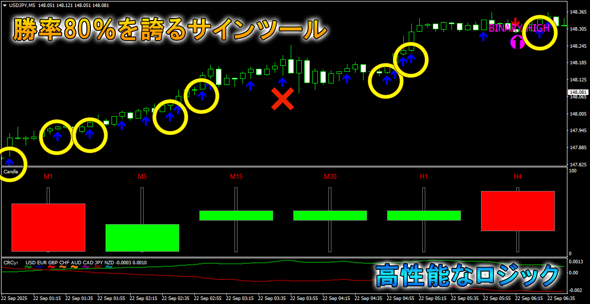 また、チャート右上には矢印サインツールを補助するシグナルツールも表示されます。