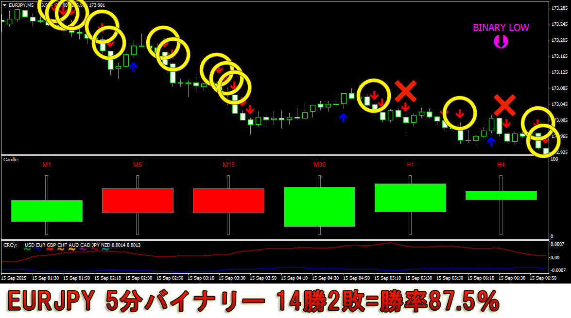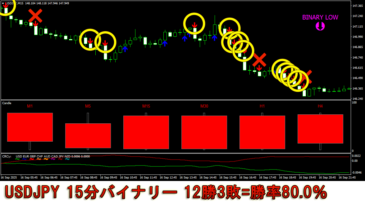 ■1分足から1時間足まで使えますが、1分、5分、15分足が一番勝率は良いです。
