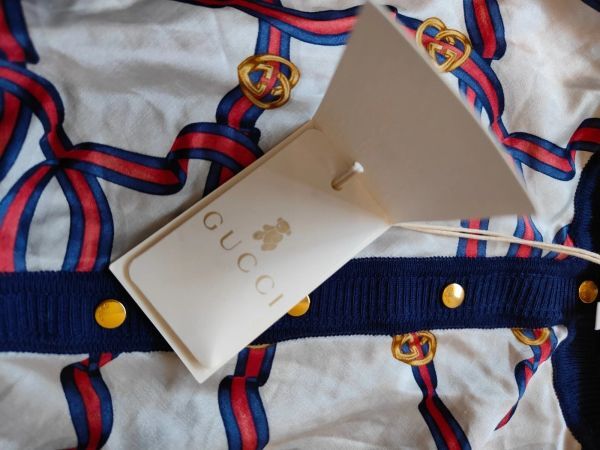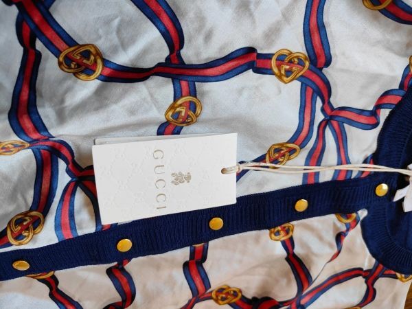 Gucci グッチ シルク カーディガン キッズサイズ 6スカーフ ハートロゴ リボン柄 レーヨンコットン