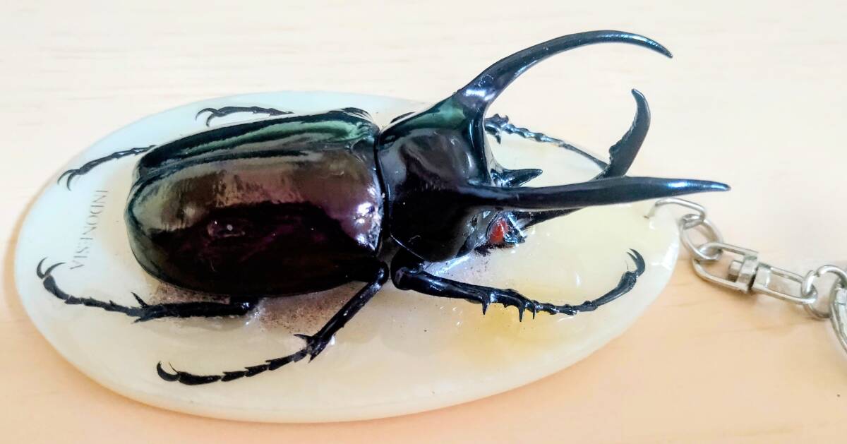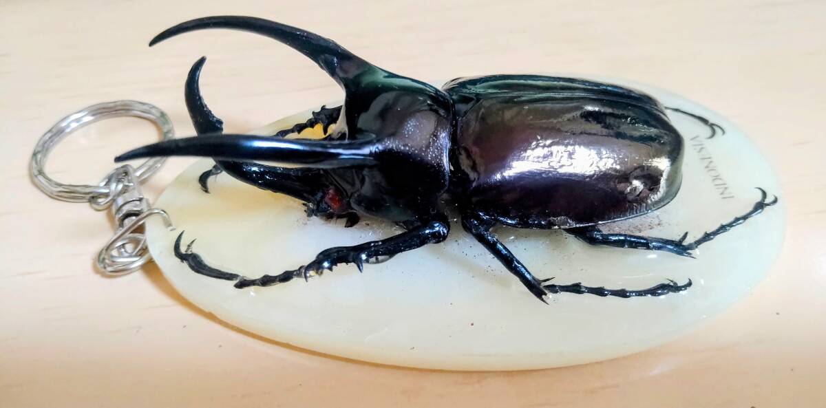 昆虫 標本 キーホルダー コーカサスオオカブト 本物 コーカサス カブトムシ 観察 鑑賞 触れる 立体 飛び出す ストラップ ②