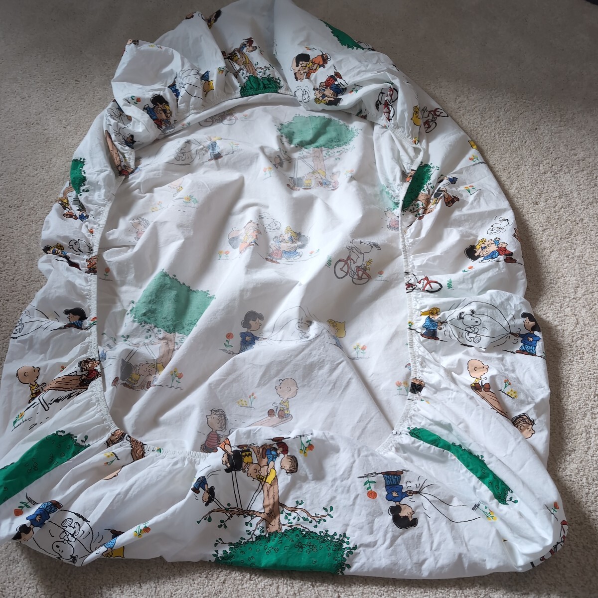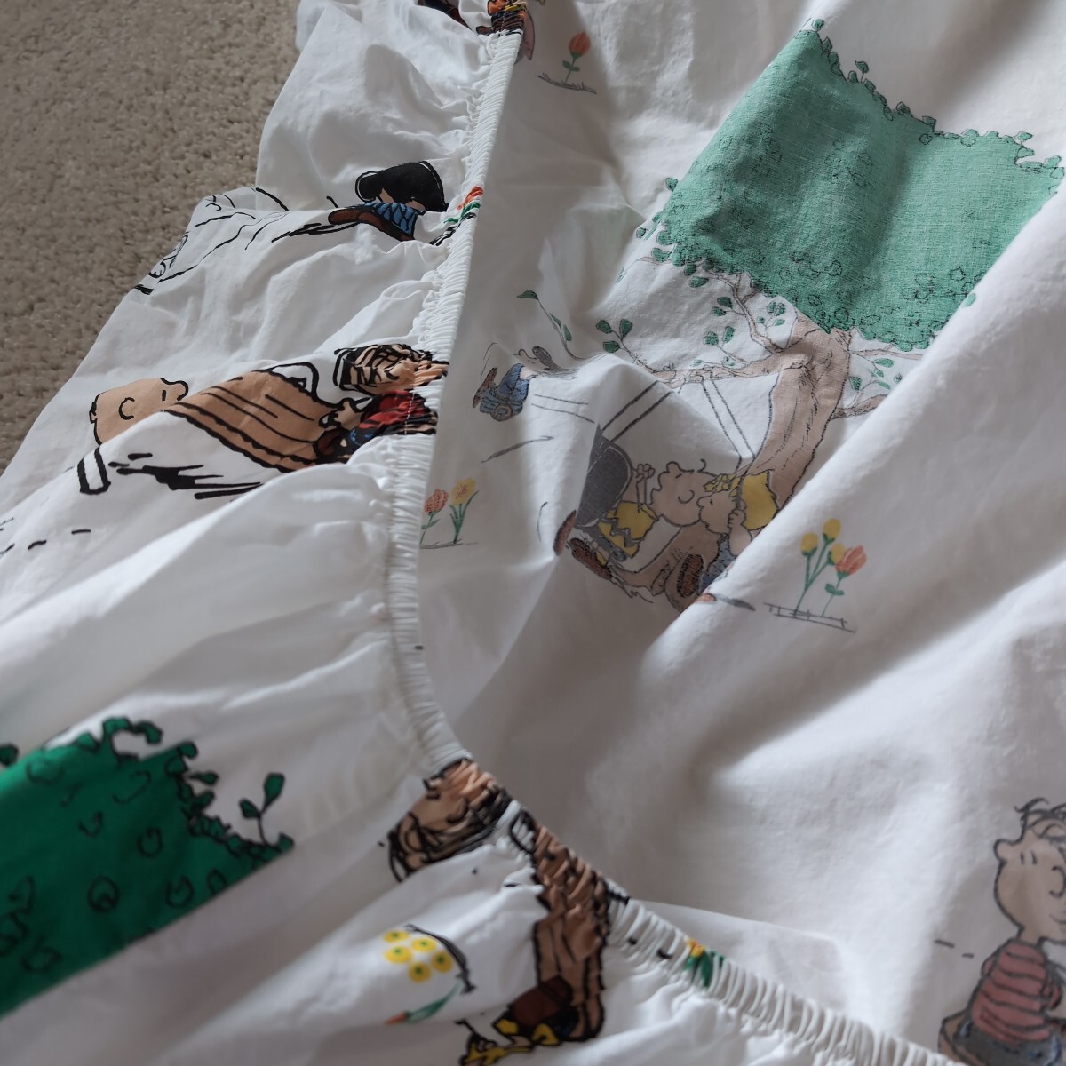 中古 超美品 スヌーピー コットン100% フィットシーツ シーツ アメリカ リメイク 生地 ハンドメイド ビンテージ はぎれ