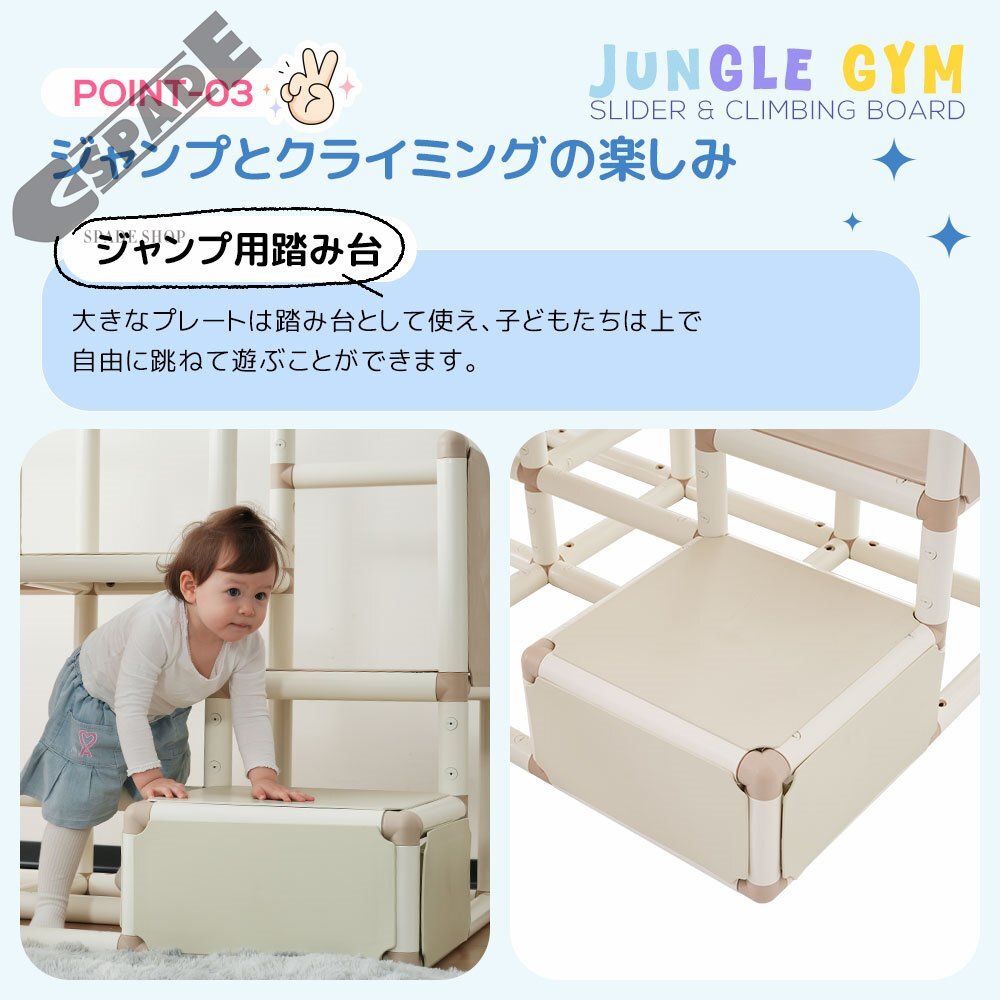 • 【ジャンプとクライミングの楽しみ 】・ ジャンプ用踏み台:大きなプレートは踏み台として使え、子どもたちは上で自由に跳ねて遊ぶことができます。・ クライミングの楽しみ:プレートは簡単に取り外し可能で、クライミングチャレンジとして使うことができます。新しい冒険を楽しみながら体力を養えます。