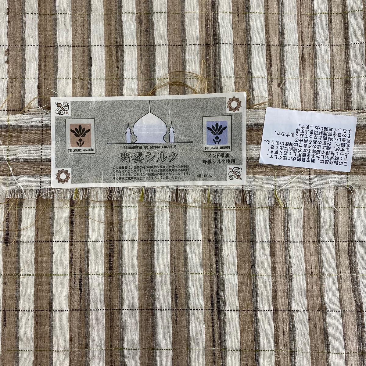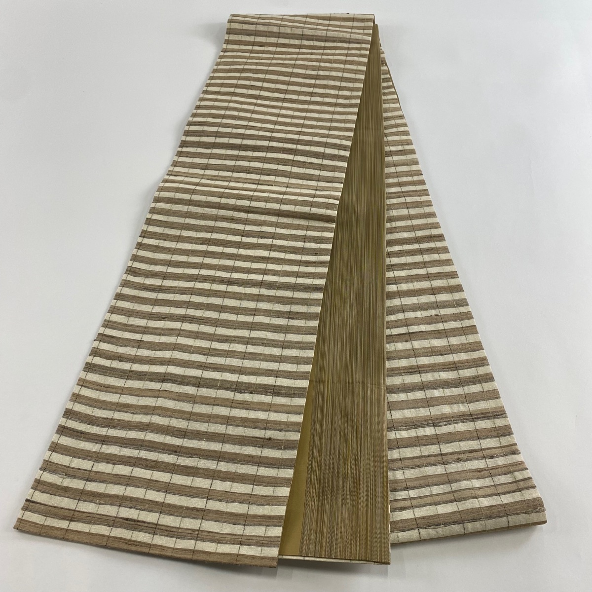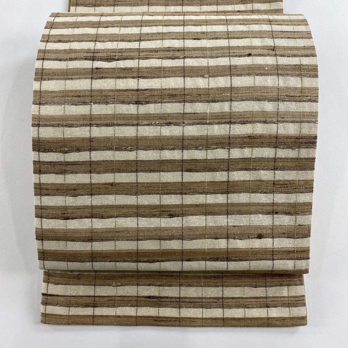 | 袋帯 美品 逸品 証紙 野蚕シルク 縞 灰茶 全通 正絹 【中古】 |