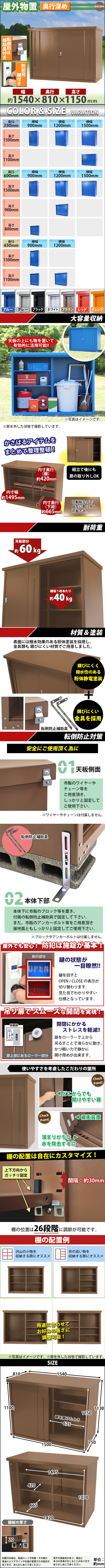 | 商品名 | 送料無料 屋外物置 スチール製 家庭用収納庫 鍵付き ブラウン 幅約1540mm×奥行約810mm×高さ約1150mm 倉庫 納屋 物置き スチール物置 スチール収納庫 ガレージ 収納 可動棚 吊り戸 吊戸 吊り扉 上吊り 吊引き戸 庭 ガーデン 茶 monookishw15d75h11br |