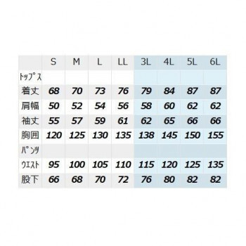 | サイズ | 6L トップス(着丈:87/肩幅:62/袖丈:66/胸囲:155)パンツ(ウエスト:135/股下:82)cm 個装サイズ:30×15×10cm |