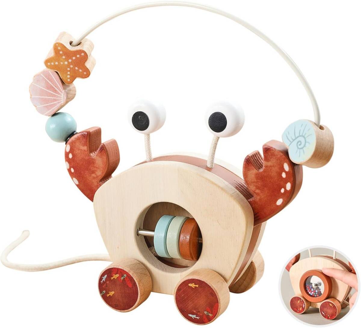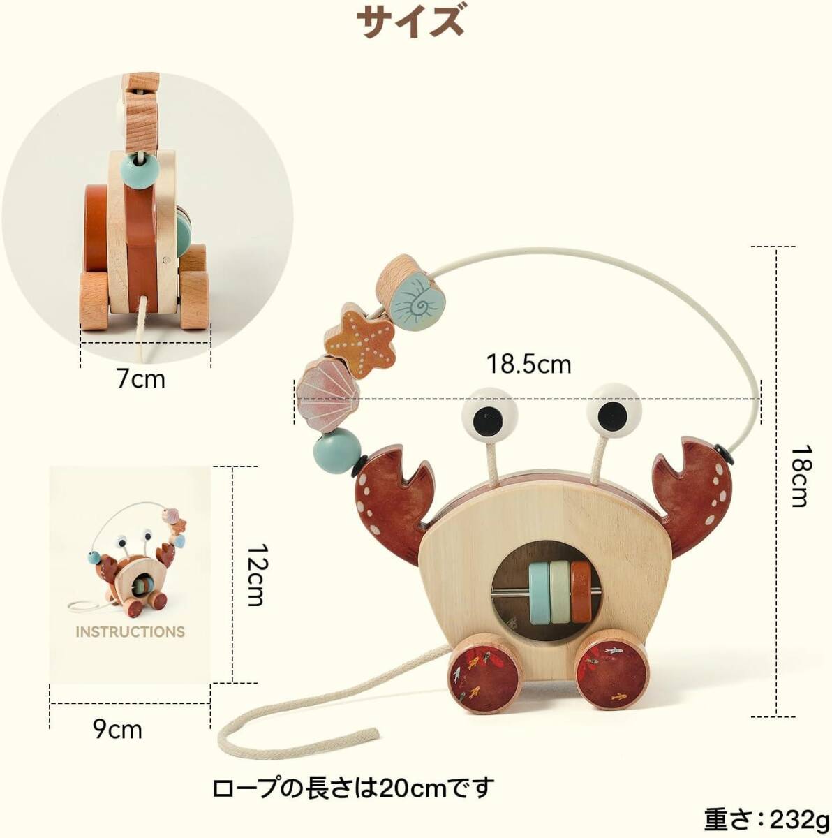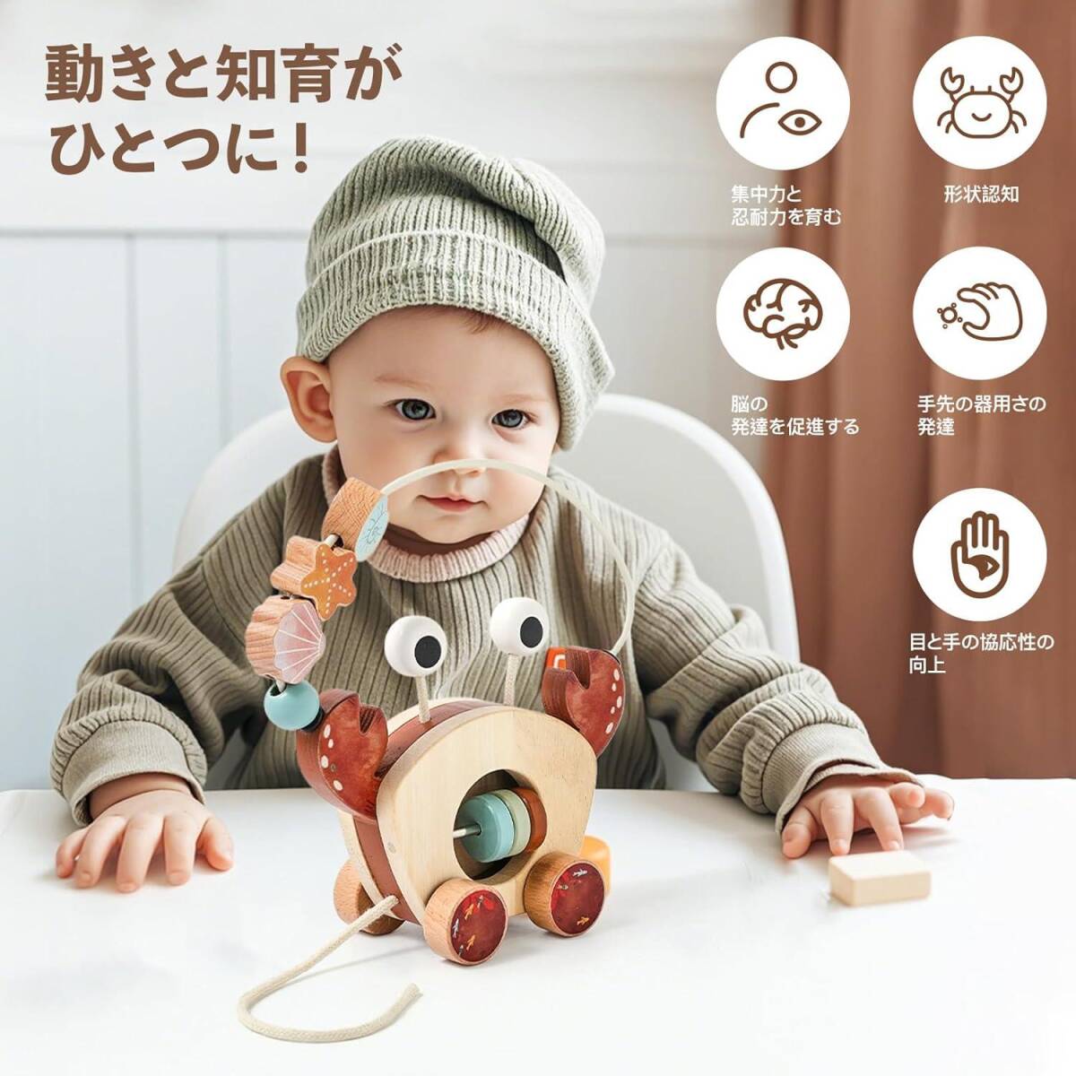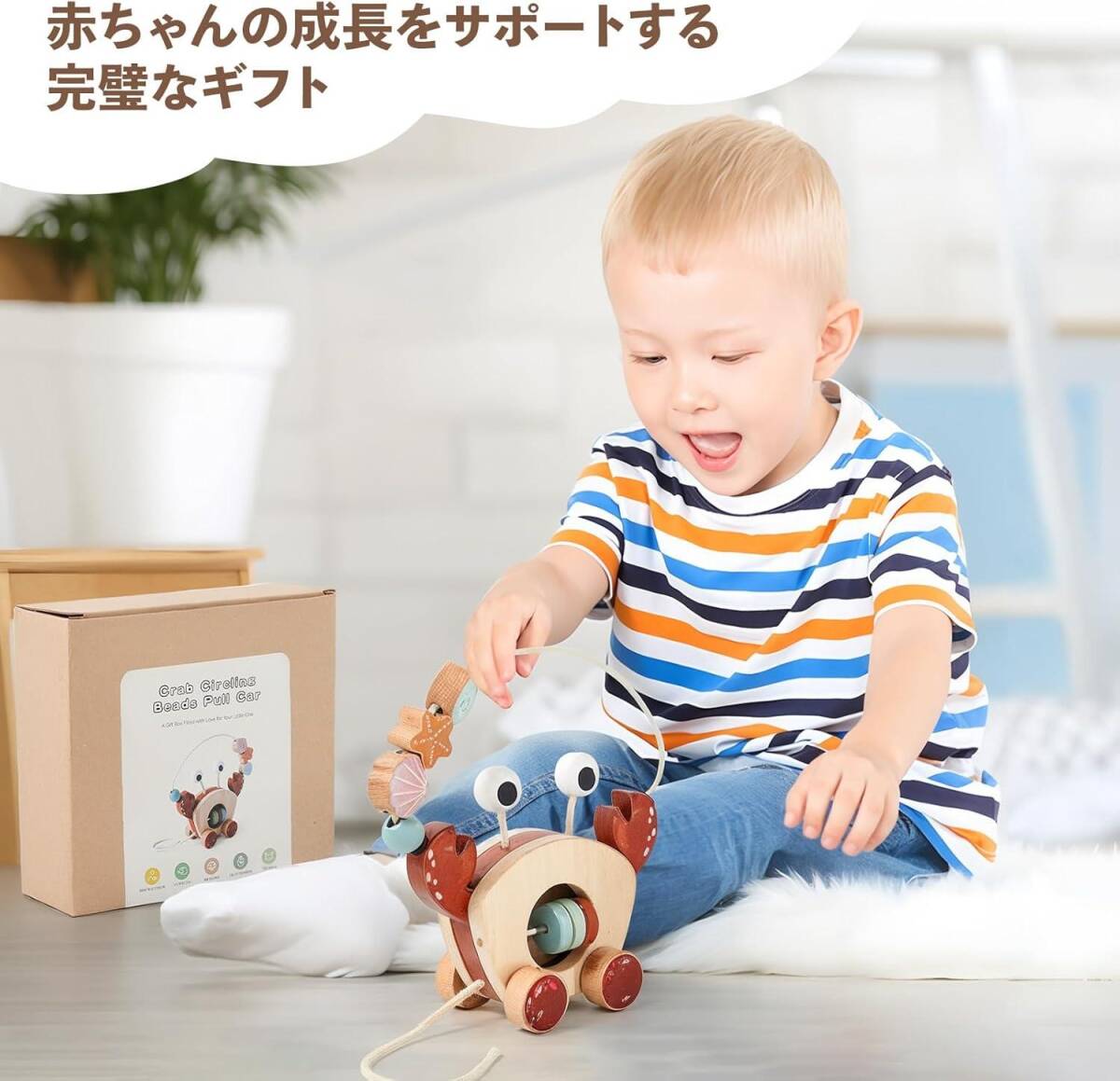 カニのおもちゃ 引っ張るおもちゃ 引き車 木製 知育玩具 色認識 指先訓練 バラ