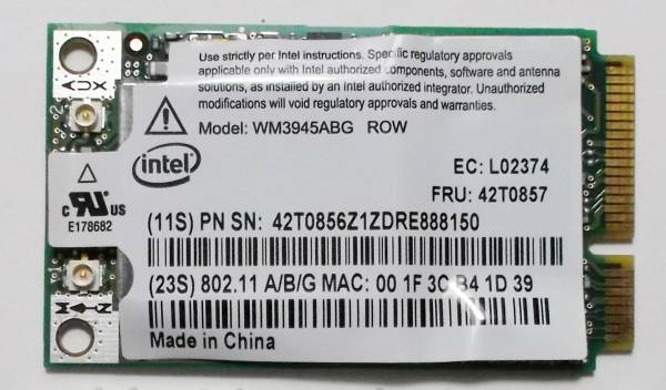 | ▲ThinkPad R60/R60e/T60/X60等用無線LANカード FRU _42T0857 | |